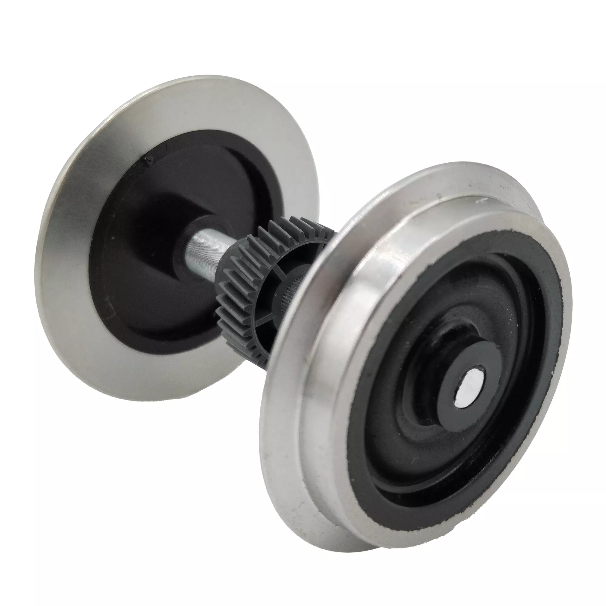 Die schwarze Antriebsachse für Spur-G Modelleisenbahnen ist eine hochwertige Komponente, die speziell für zuverlässige Leistung entwickelt wurde. Mit einem Radkranz aus robustem Edelstahl (V2A) mit einer 37,5 mm Lauffläche, ist sie die perfekte Ergänzung für viele Spur-G Lokomotiven. Der Radkranz wurde aus harten Edelstahl gefertigt, was für Langlebigkeit und Stabilität sorgt. Das B-Zahnrad ist schrägverzahnt mit 34 Zähnen und besteht aus extrem widerstandsfähigem Material, um Abnutzung auf ein Minimum zu reduzieren. Diese Antriebsachse gewährleistet eine reibungslose und zuverlässige Leistung Ihrer Spur-G Lokomotive und trägt dazu bei, Ihr Modellbahnerlebnis auf ein neues Niveau zu heben.