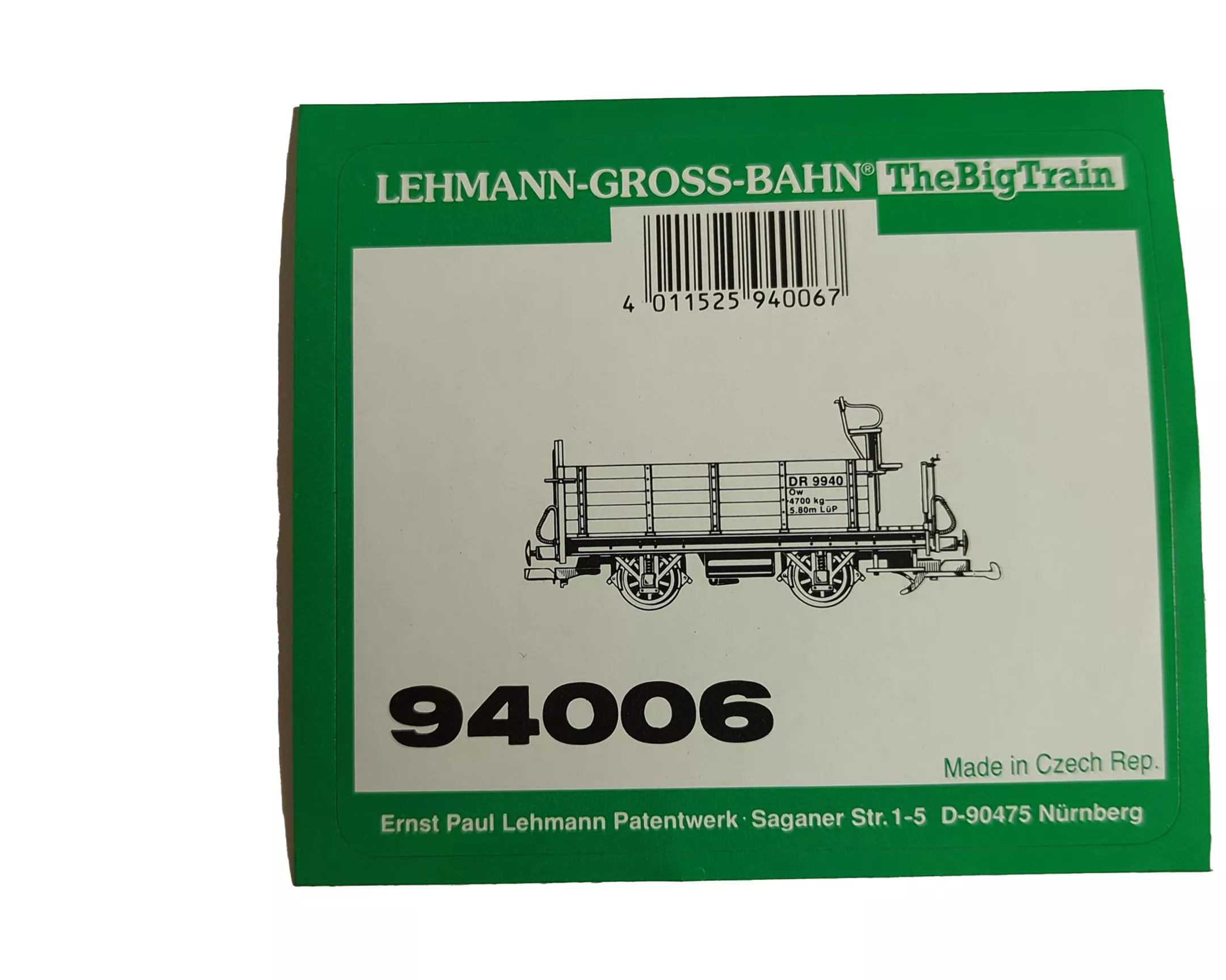 Aufkleber Güterwagen Hochbordwagen DR 9940 Toy Train LGB 94006