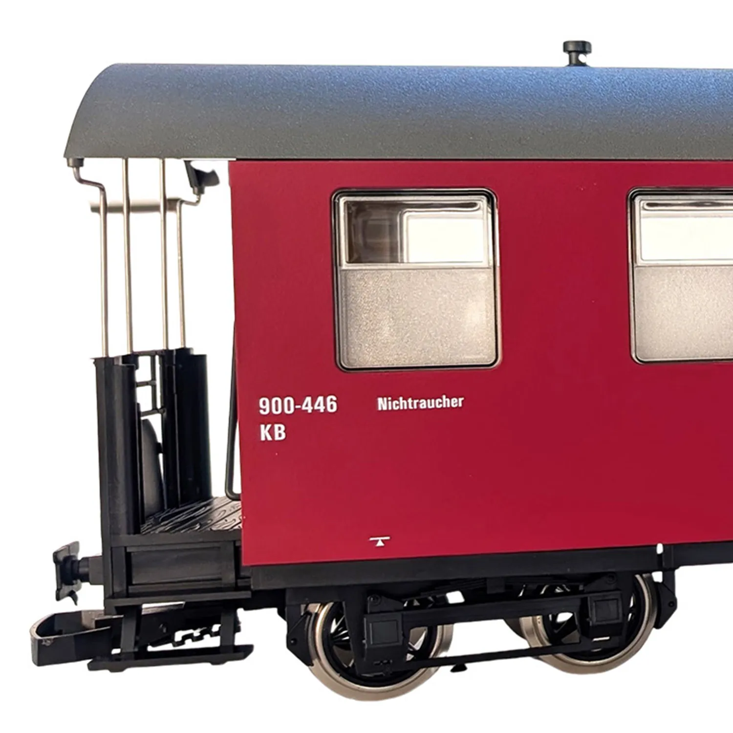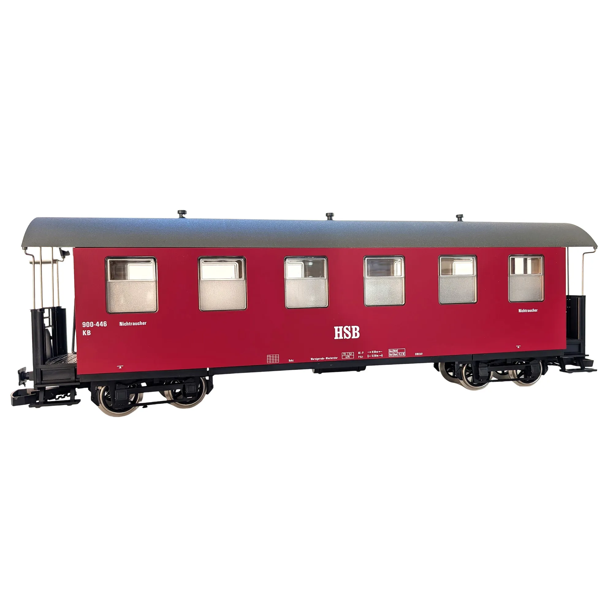 Das Modell stellt den HSB Behelfspackwagen mit der Betriebsnummer 900-446 dar und ist als Spur G Ausführung erhältlich. Charakteristisch umgesetzt sind die Fenster, die – wie beim Vorbild – teilweise blickdicht wirken und dem Wagenkasten eine stimmige Anmutung geben. So bleibt der Gesamteindruck ruhig und authentisch, auch wenn der Wagen im Zugverband prominent mitläuft.