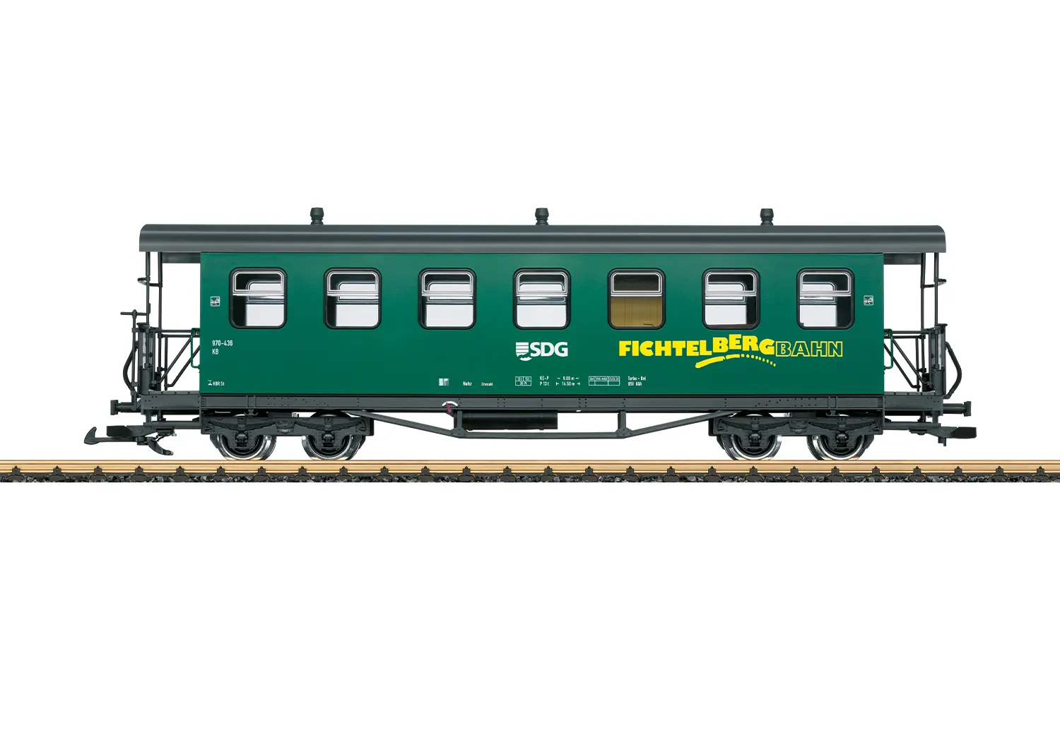 Dieses Modell repräsentiert genau diesen Bistrowagen der Bauart KB, der von der SDG betrieben wird und auch heute noch auf der Fichtelbergbahn im Einsatz ist. Das Modell ist in originalgetreuer Farbgebung und Beschriftung der Epoche VI gestaltet und verfügt über eine vollständige, dem Vorbild entsprechende Inneneinrichtung. Die Radsätze sind aus Metall gefertigt. Länge über Puffer 58 cm.