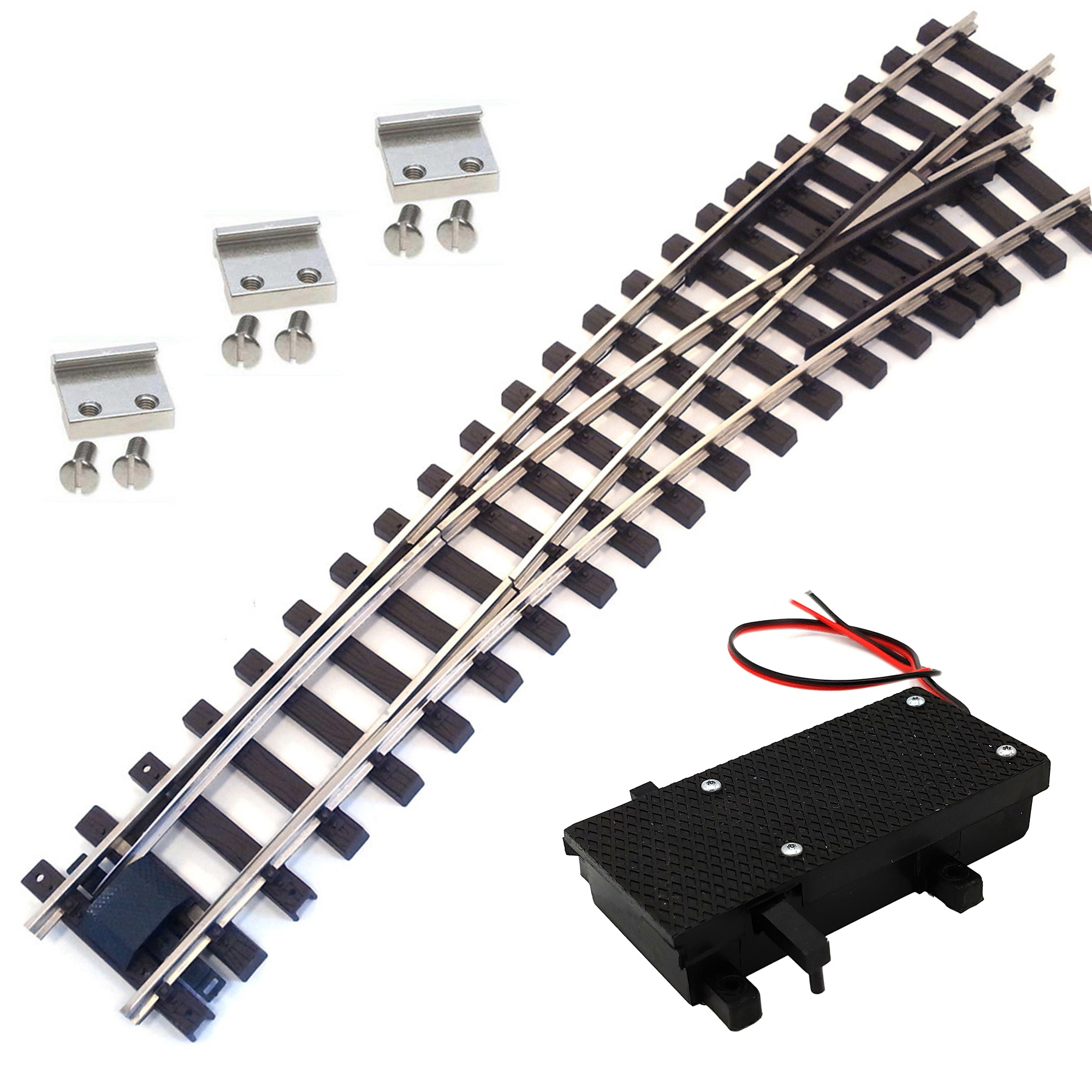 Diese Bogenweiche mit zweifachem Radius ist ideal für Gleisführungen auf kompakten Anlagen mit Platzbedarf. Das vernickelte Messingprofil gewährleistet ausgezeichnete Stromleitfähigkeit bei gleichzeitigem Schutz vor Korrosion. Das witterungsbeständige HDPE-Gleisbett ist für langfristigen Betrieb im Außenbereich konzipiert.