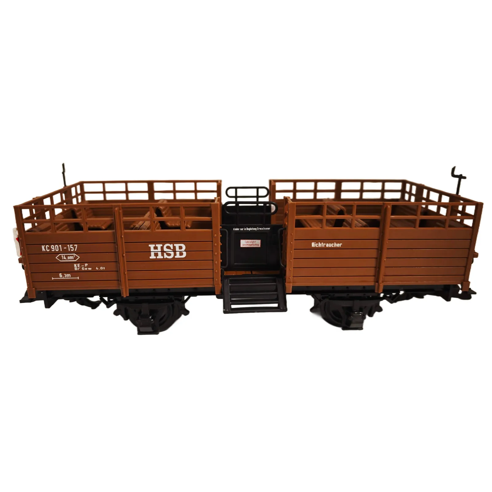 Detailreicher HSB Cabriowagen KC901-157 in Spur G aus wetterfestem Kunststoff, passend zu LGB-HSB und ideal zur Ergänzung von Harzbahn-Personenzügen.