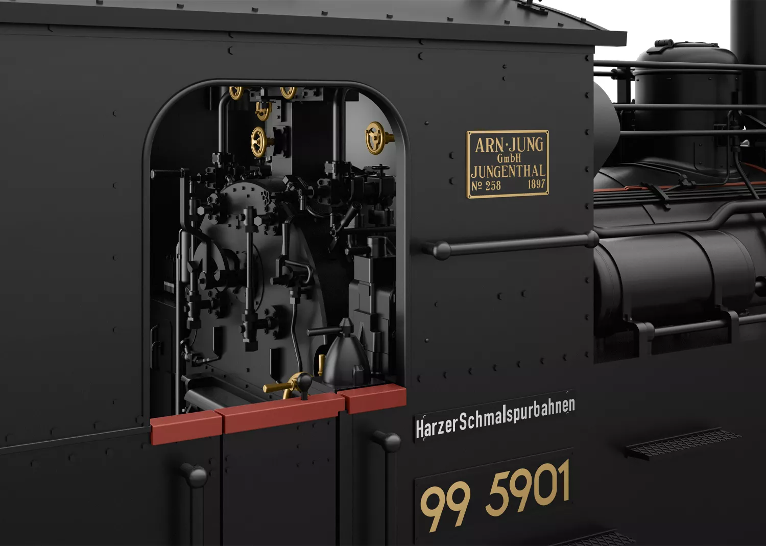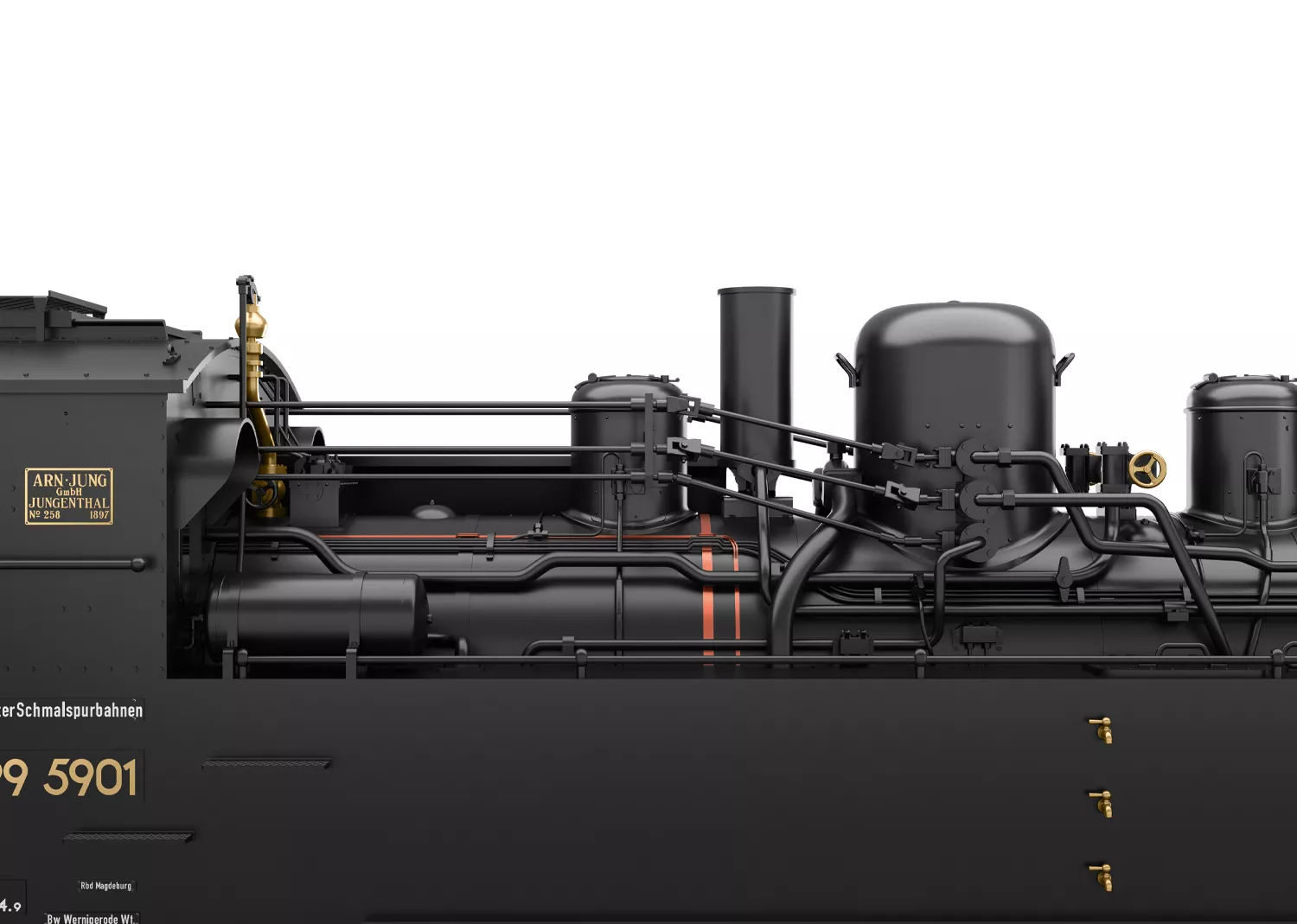 Dieses Modell stellt die Dampflokomotive 99 5901 der Harzer Schmalspurbahnen dar. Es handelt sich um ein hochdetailliertes Modell aus schwerem Metall, das viele angesetzte Details aufweist. Der Antrieb erfolgt durch zwei Hochleistungsmotoren, die alle Treibradsätze über Kuppelstangen antreiben. Die Türen zum Führerstand sowie die Rauchkammertür können geöffnet werden. Das Fahrwerk ist im Stil der Bauart Mallet gestaltet und verfügt über zahlreiche Details wie vollständige Gestänge und den Antrieb der Schmierpumpe. Die Lackierung und Beschriftung entsprechen der Epoche VI und sind originalgetreu, genau wie die Lokomotive heute noch bei der HSB vorhanden ist.