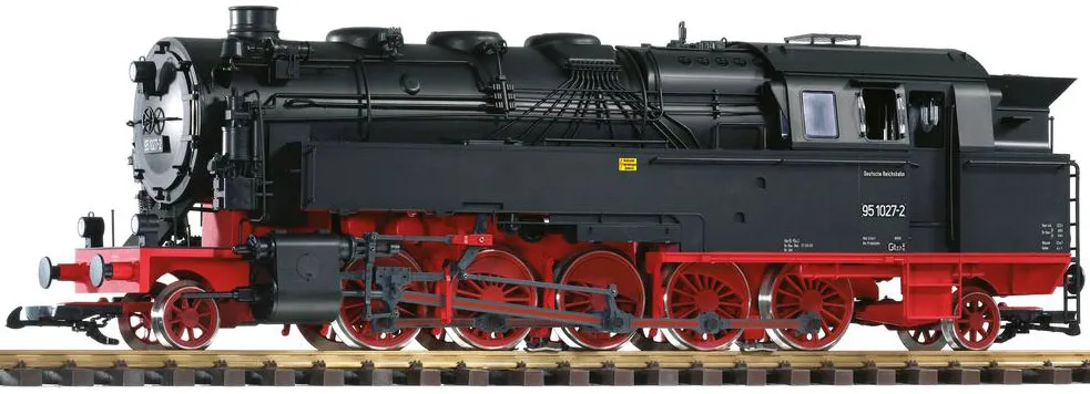 VorbildDie fünffachgekuppelte Tenderlokomotive der Baureihe 95 wurde als T20 ab Anfang 1923 für den Einsatz vor schweren Zügen auf steilen Strecken in Betrieb genommen. Sie war die stärkste von der Reichsbahn beschaffte Tenderlokomotive und konnte in der Ebene eine Zuglast von 2060 Tonnen noch mit 50 km/h befördern. Nach dem Zweiten Weltkrieg kamen von den 45 Maschinen 14 zur Deutschen Bundesbahn. Ihr Einsatzgebiet umfasste hauptsächlich den Schiebedienst auf Rampenstrecken. Bis 1958 wurden die letzten Loks bei der Bundesbahn ausgemustert. Nach dem Krieg erhielt die Deutschen Reichsbahn 31 Lokomotiven der BR 95. Um die Transportkapazitäten zu erhöhen, wurden von der DR Anfang der 1970er Jahre die Zuglasten der BR 95 erhöht. Dies verlangte dem Lokpersonal immer mehr körperliche Leistungen ab. Um dem Unmut der Heizer zu begegnen, wurden 24 Lokomotiven auf Öl-Hauptfeuerung umgebaut. Die letzten Lokomotiven der Baureihe waren auf Strecken um Sonneberg im Einsatz und wurden erst Anfang der 1980er Jahre ausgemustert. Mehrere Loks sind museal erhalten, die Lok 95 027 ist als betriebsfähiges Exemplar bis heute immer wieder Einsatz zu sehen.