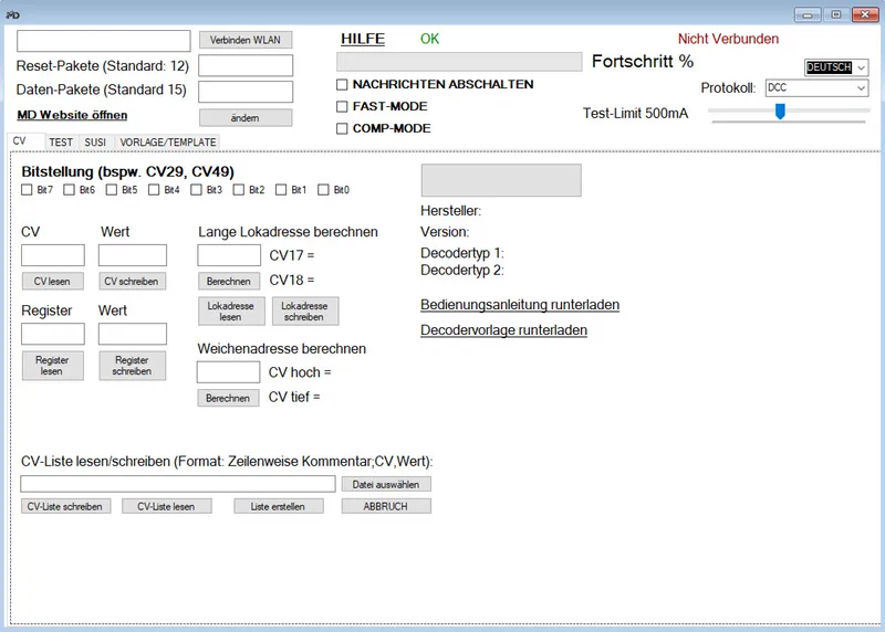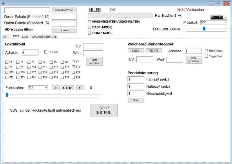 - Decoder Testen/Programmieren auf einem Gleis aller Decoder