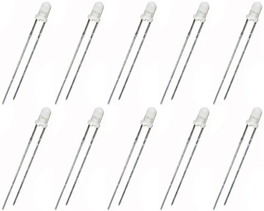 Die 3 mm LEDs haben einen integrierten Regler für Spannung von 5-24 V und können ohne Widerstand direkt an die Fahrspannung der Spur-G angeschlossen werden. Die LEDs sind für alle Spannungsarten bis 24 Volt geeignet (DC, AC und DCC)!