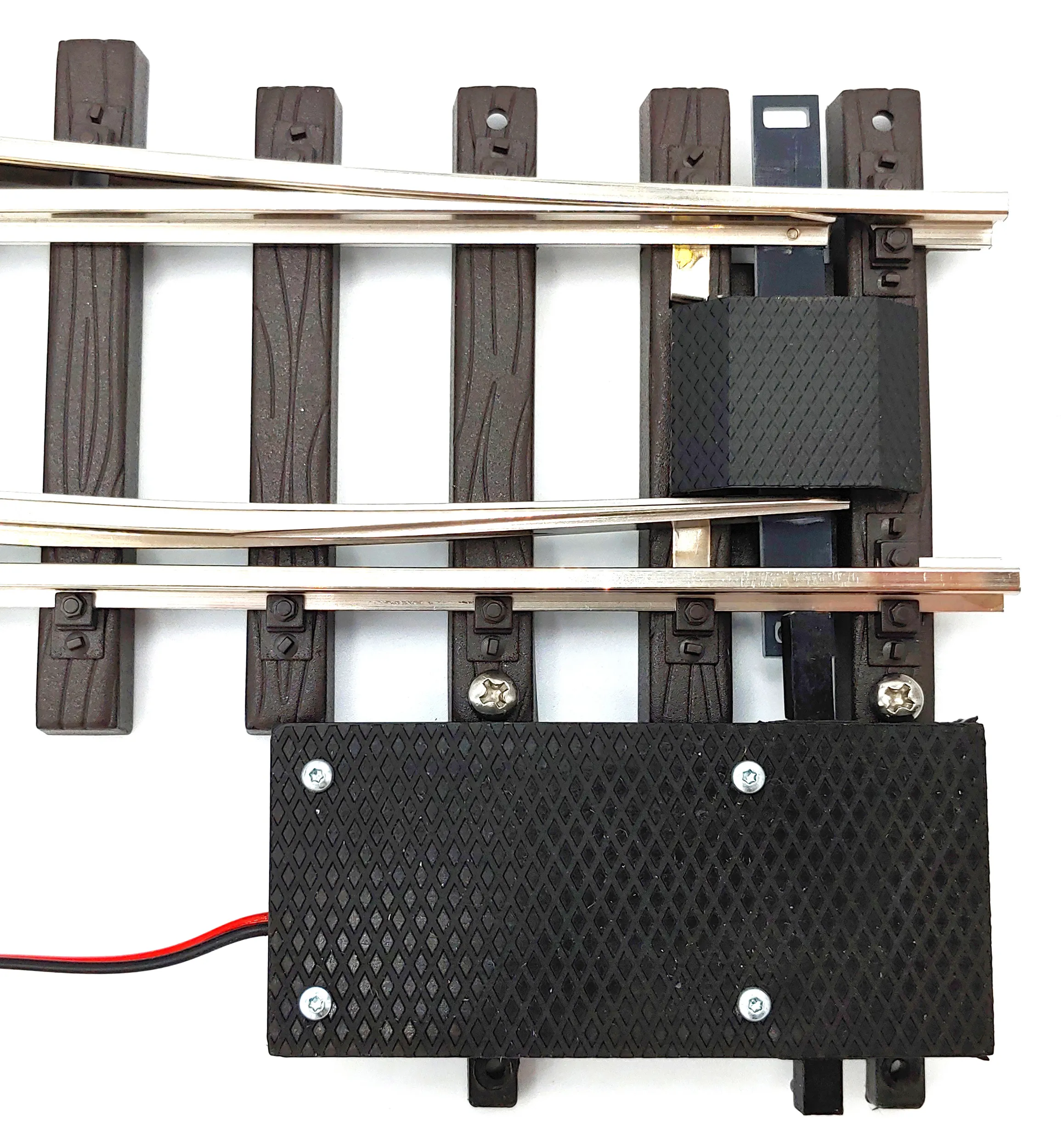 Set mit 4 digitalen Weichenantrieben und 4 passenden Weichenheizungen für Spur G. Sorgt für kräftige, exakt schaltende Weichen mit Herzstückpolarisation und freigängigen Zungen bei Kälte und Nässe.