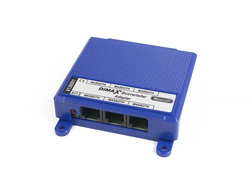 Mit diesem passiven Busadapter können Sie mehrere Eingabegeräte oder Steuergeräte (z.B. LGB 55015, 55016, 55070 usw.) sowie weitere digitale Buskomponenten an die DiMAX- oder MZS-II-Zentralen anschließen. Für den Anschluss liegt ein Buskabel mit 6 Metern Länge bei. Eine rote Kontrolleuchte zeigt die Betriebsbereitschaft an.