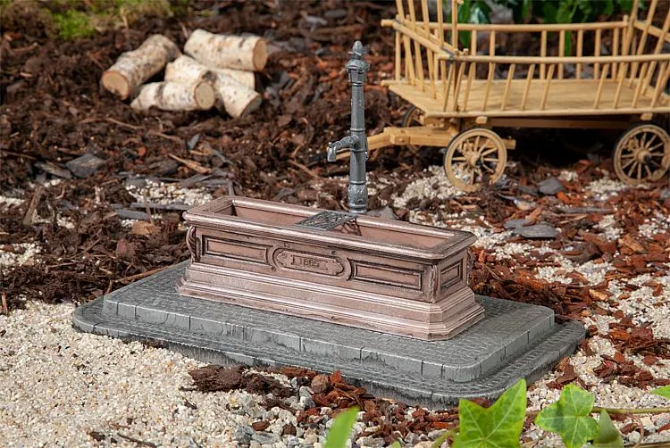 Der Dorfbrunnen mit länglichem Wassertrog ist ein attraktiver Mittelpunkt für die Darstellung von Dorf- oder Stadtplätzen. Modell ohne Funktion.