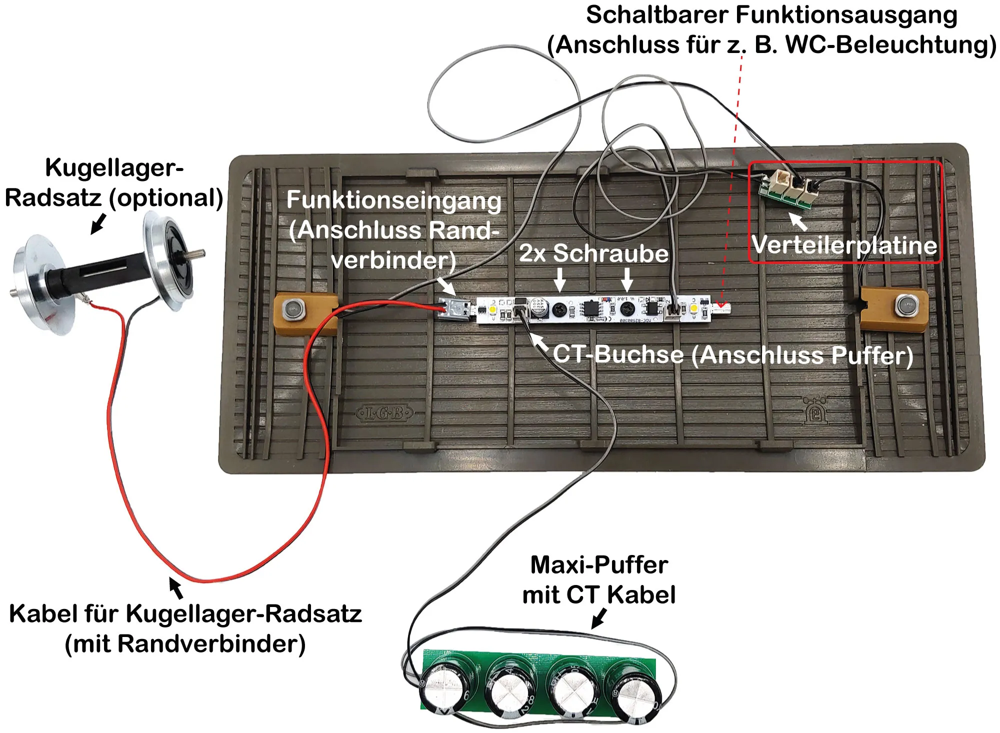 Mit der 3-fach Licht-Verteilerplatine kann man einfach die Beleuchtung vom Personenwagen oder einer Lok verteilen (plug and play).