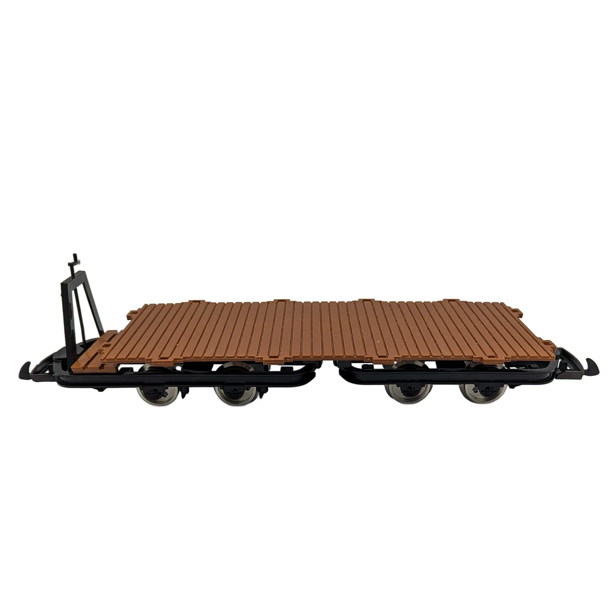 Bauoptionen wie beim VorbildVorbildgetreue Erweiterungen ermöglichen den historischen Auftritt des Flachwagens, denn mit passenden Komponenten wie steckbaren