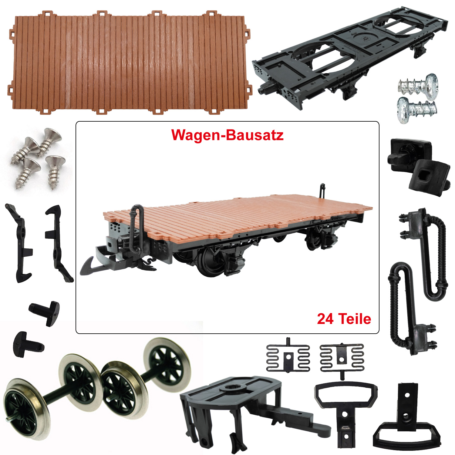 Flachwagen braun mit Doppelspeichen-Metallräder als Spur-G Bausatz ML-Train 88921520