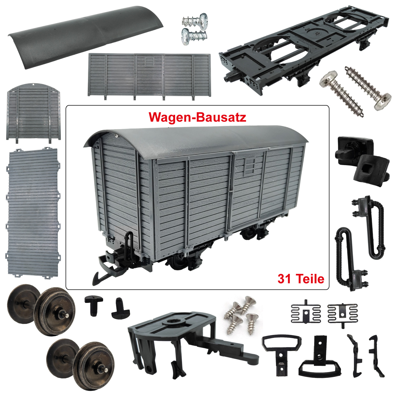 Gedeckter Güterwagen grau mit Metallrädern als Spur-G Bausatz ML-Train 88920610