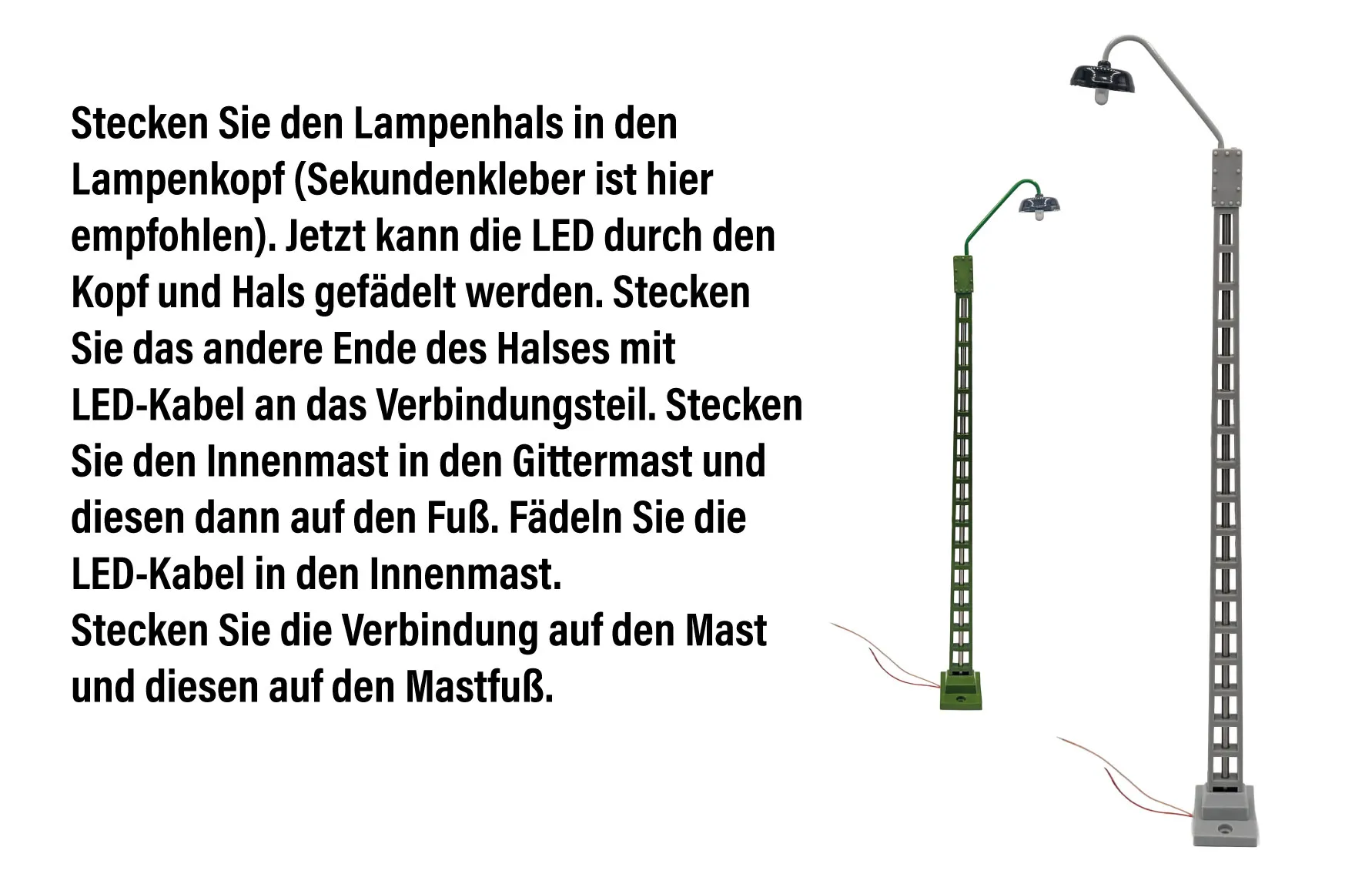 Das klassische Gittermastdesign in dezenter grauer Farbe verleiht der Szene ein realistisches, technisches Erscheinungsbild mit hoher Detailtiefe. Die proportionale Ausführung und präzise Fertigung spiegeln nicht nur optische Authentizität, sondern auch den qualitativen Anspruch wider – passend für alle anspruchsvollen Modellbauer.