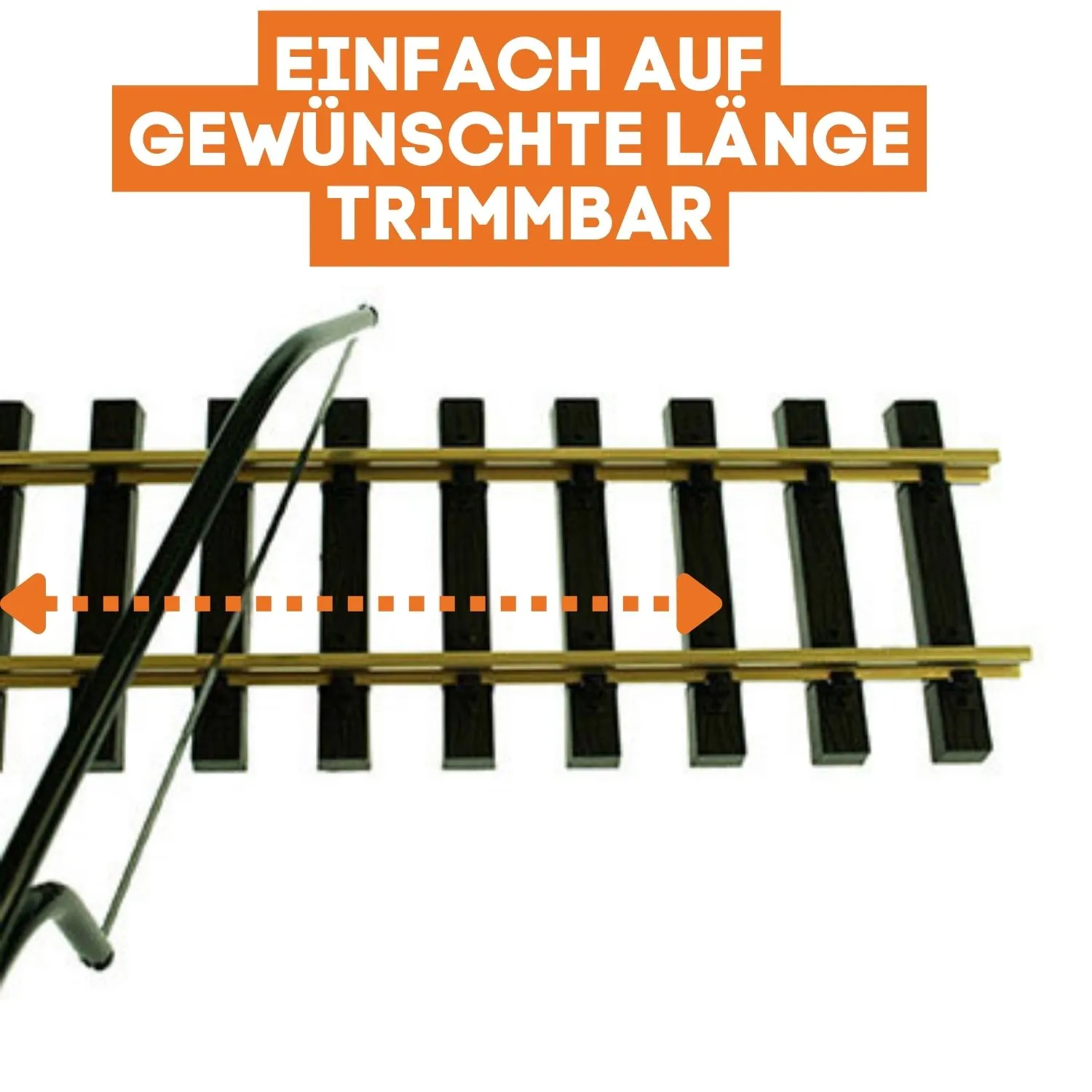 ML Train Spur G Gleise lassen sich nahtlos mit gängigen Gleissystemen anderer Hersteller kombinieren und behalten dabei einen gleichmäßigen Schwellenabstand. Die Profile können unkompliziert auf die benötigte Länge gekürzt werden, sodass individuelle Streckenverläufe, Modulübergänge und passgenaue Anschlussstücke präzise realisiert werden können.