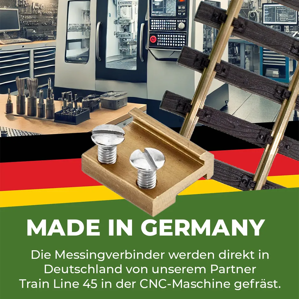 Die verschraubten ML-Train Schienenverbinder sorgen für festen Sitz, schützen die Kontaktflächen vor Oxidation und gewährleisten einen stabilen Stromfluss – für einen ruhigen, störungsfreien Fahrbetrieb.
