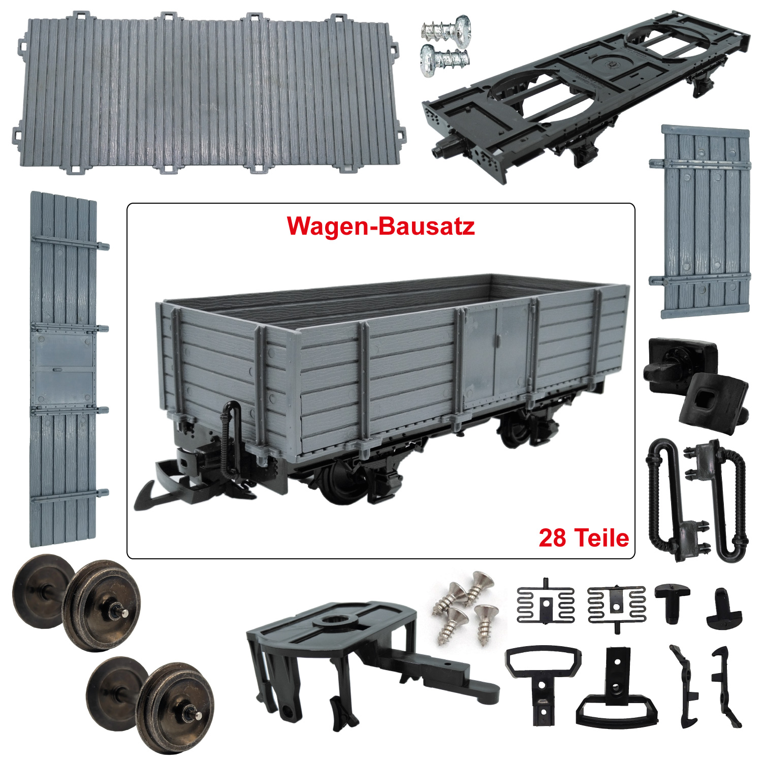 Hochbordwagen grau mit Metallräder als Spur-G Bausatz ML-Train 88920550