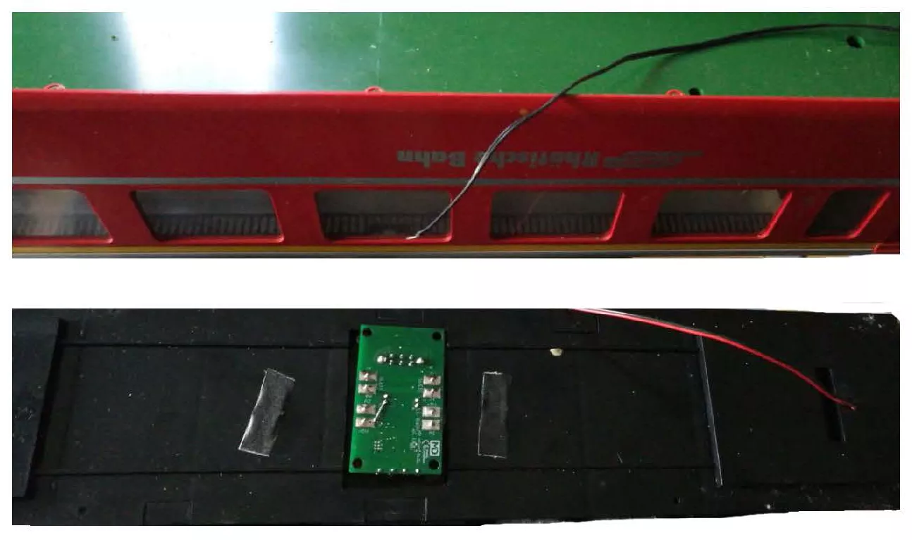 Das nachfolgende Bild zeigt den Decoder eingebaut in einen RhB-Personenwagen, sodass die alte, störungsanfällige Elektronik ersetzt wird.