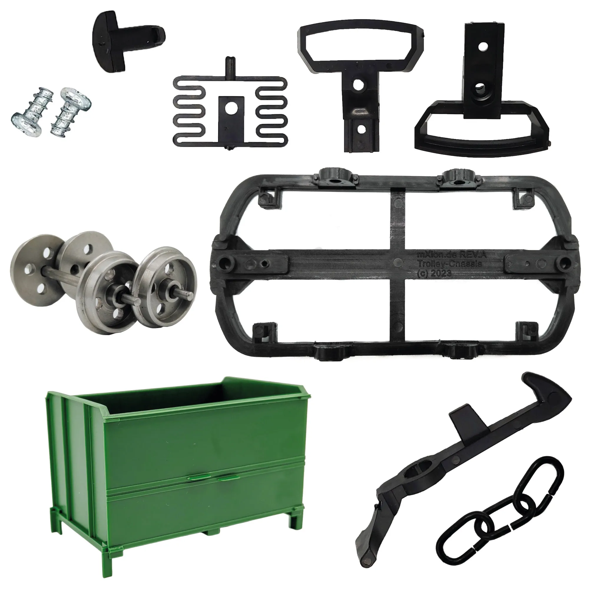 Der Aufbau gestaltet sich unkompliziert und erfordert keine speziellen Kenntnisse. Ein Kreuz-Schraubendreher Größe 1, erhältlich bei ML-Train unter der Artikelnummer 88303101, genügt für die Montage. Kupplungen und Ketten sind im Lieferumfang enthalten und erlauben die sofortige Verbindung mit weiteren Wagen.