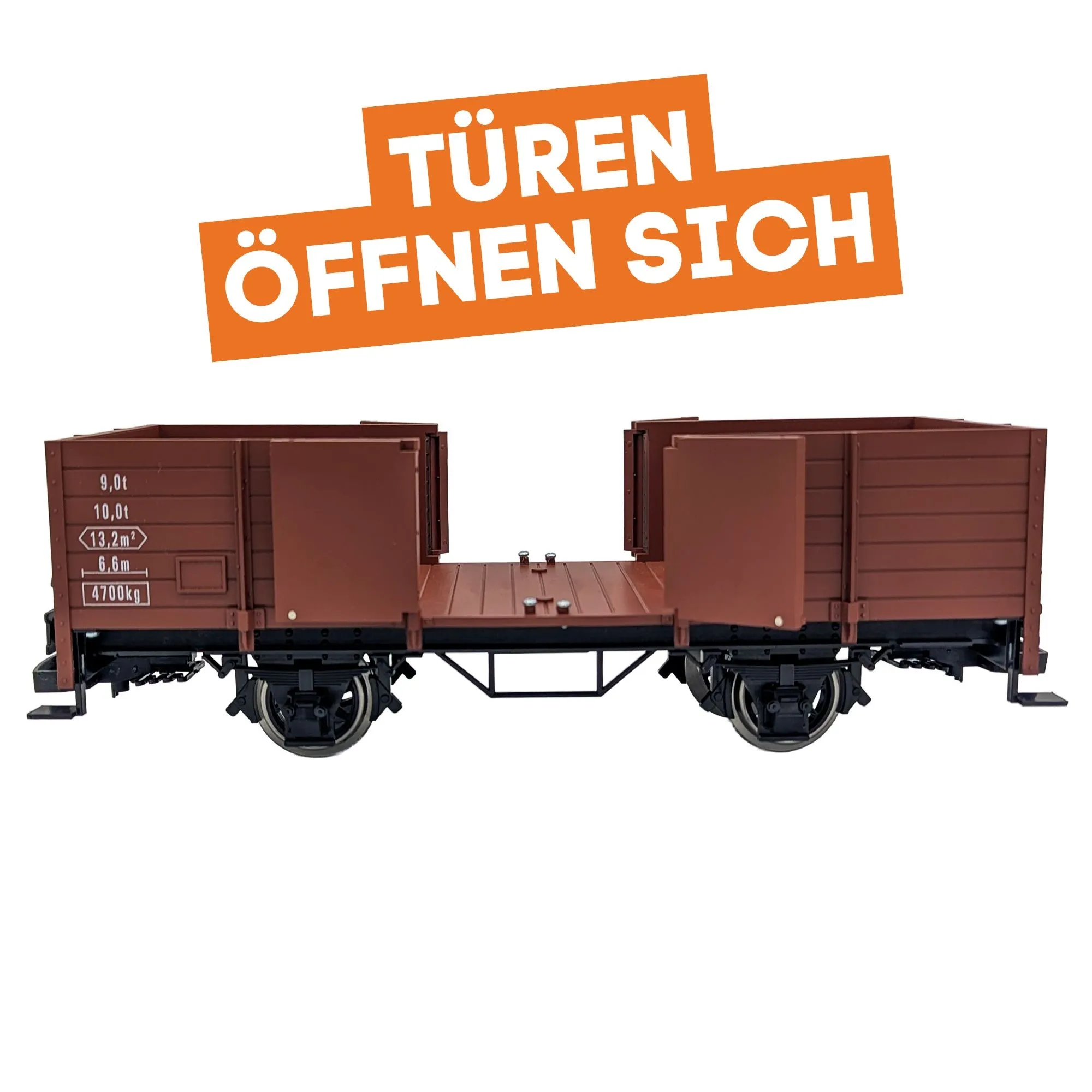 Öffnende Türen unterstützen realistische Be- und Entladesituationen und bringen Bewegung in den Güterbetrieb. Der Magnetverschluss hält die Türen geschlossen sicher in Position und verhindert ungewolltes Aufklappen während der Fahrt oder beim Umsetzen.