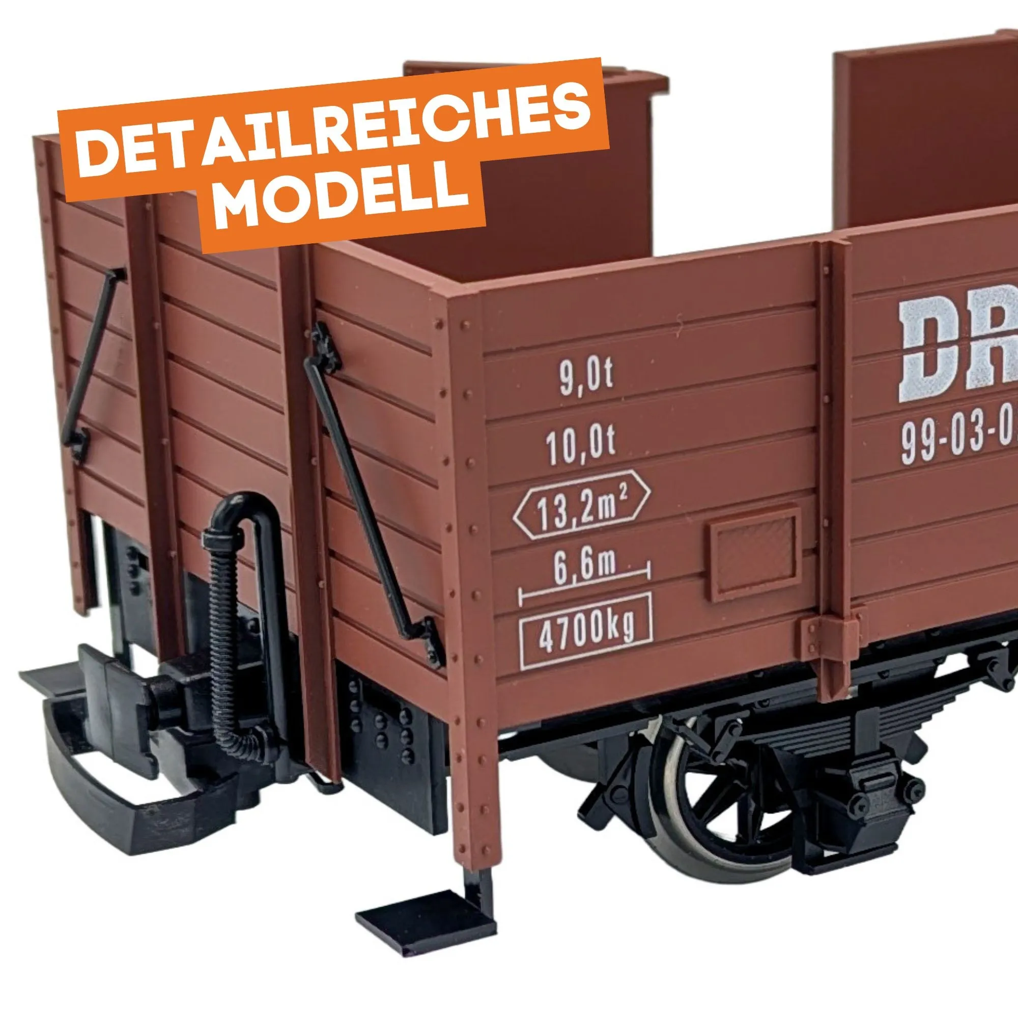 Die komplette Herstellung in Deutschland steht für eine Ausführung, die auf regelmäßigen Betrieb ausgelegt ist. Dadurch wirkt der Wagen nicht nur stimmig, sondern bleibt auch bei intensiver Nutzung im Rangier- und Fahralltag zuverlässig im Einsatz.