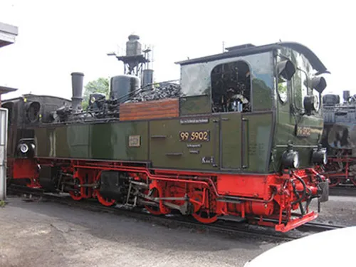 Nachbildung der Mallet-Lokomotiven NWE 11–22, die zwischen 1897 und 1901 für die steilen Harzstrecken beschafft wurden und später als Baureihe 99.59 bei der Reichsbahn im Einsatz standen.