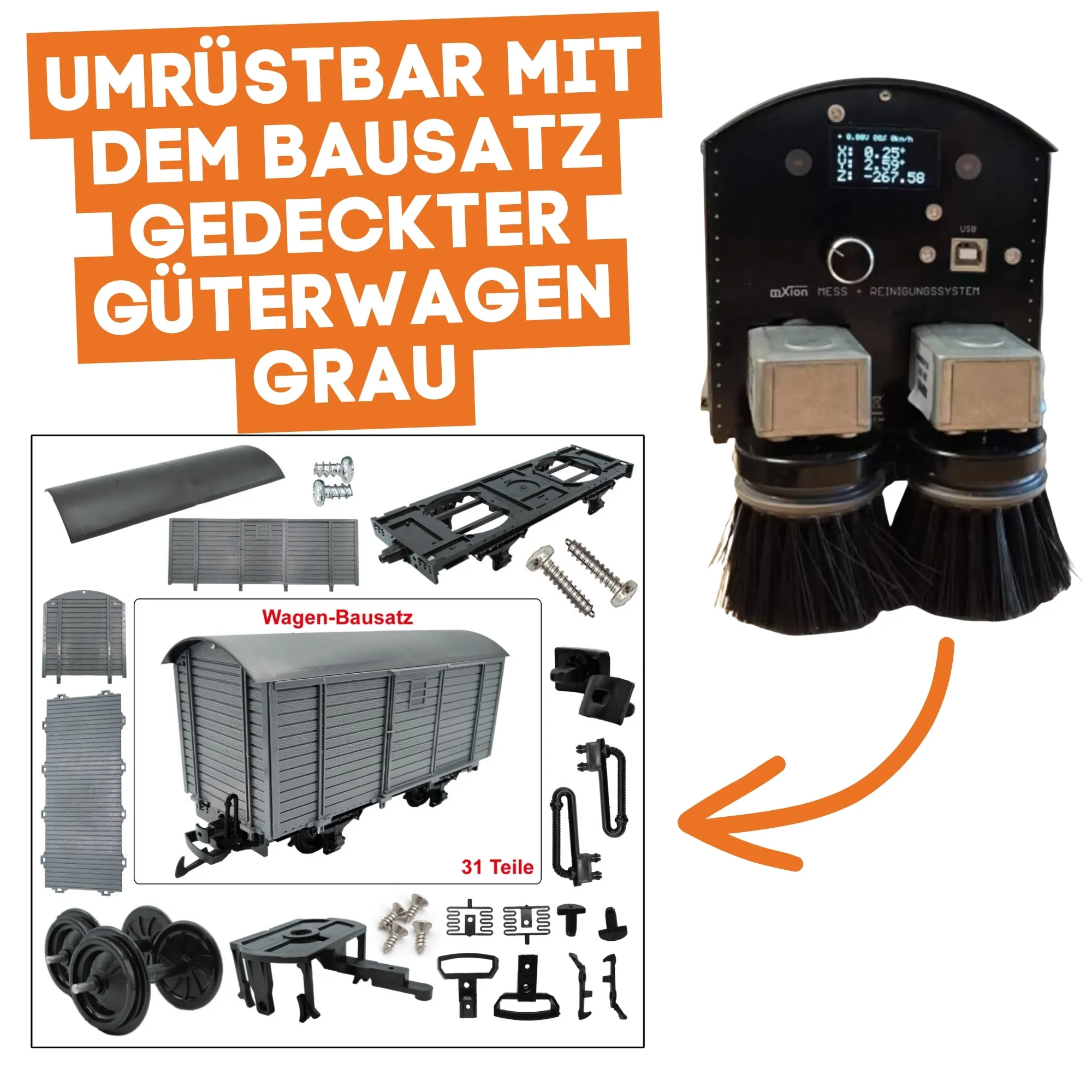 Der braune Mess- und Reinigungs-Güterwagen von ML-Train vereint, was lange getrennt war: wirkungsvolle Gleisreinigung und präzise Datenerfassung für den Anlagenbetrieb. Bürstenwagen sind bewährt; mit der Digitalisierung entstand der Anspruch, zusätzlich Messwerte zu Spannung, Geschwindigkeit und Streckenlage zu gewinnen. Der Bausatz knüpft an robuste Reinigungstechnik an, ergänzt sie um moderne Sensorik mit Auswertung direkt an Bord und bringt dies in einer stimmigen, braunen Güterwagenoptik auf die Anlage.