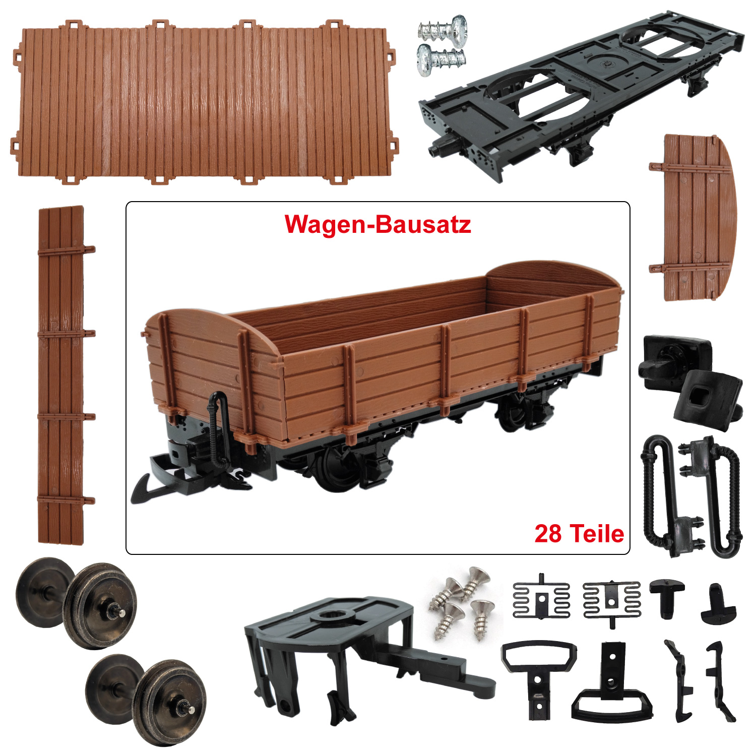 Niederbordwagen braun mit Metallräder als Spur-G Bausatz ML-Train 88920530