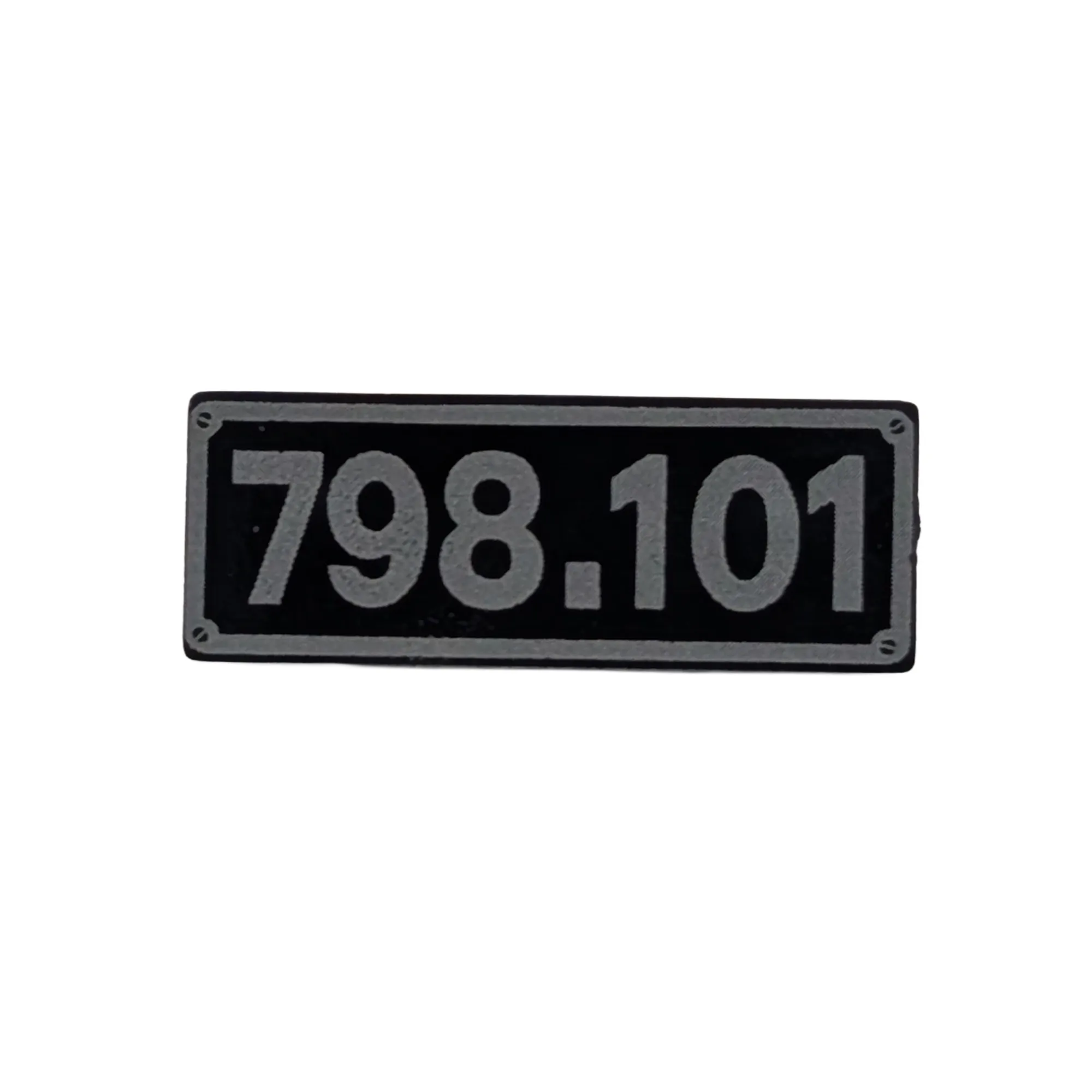 Nummerntafel bedruckt mit "798.101" für die Nicki u. Frank S Dampflok 2026 21261 24266