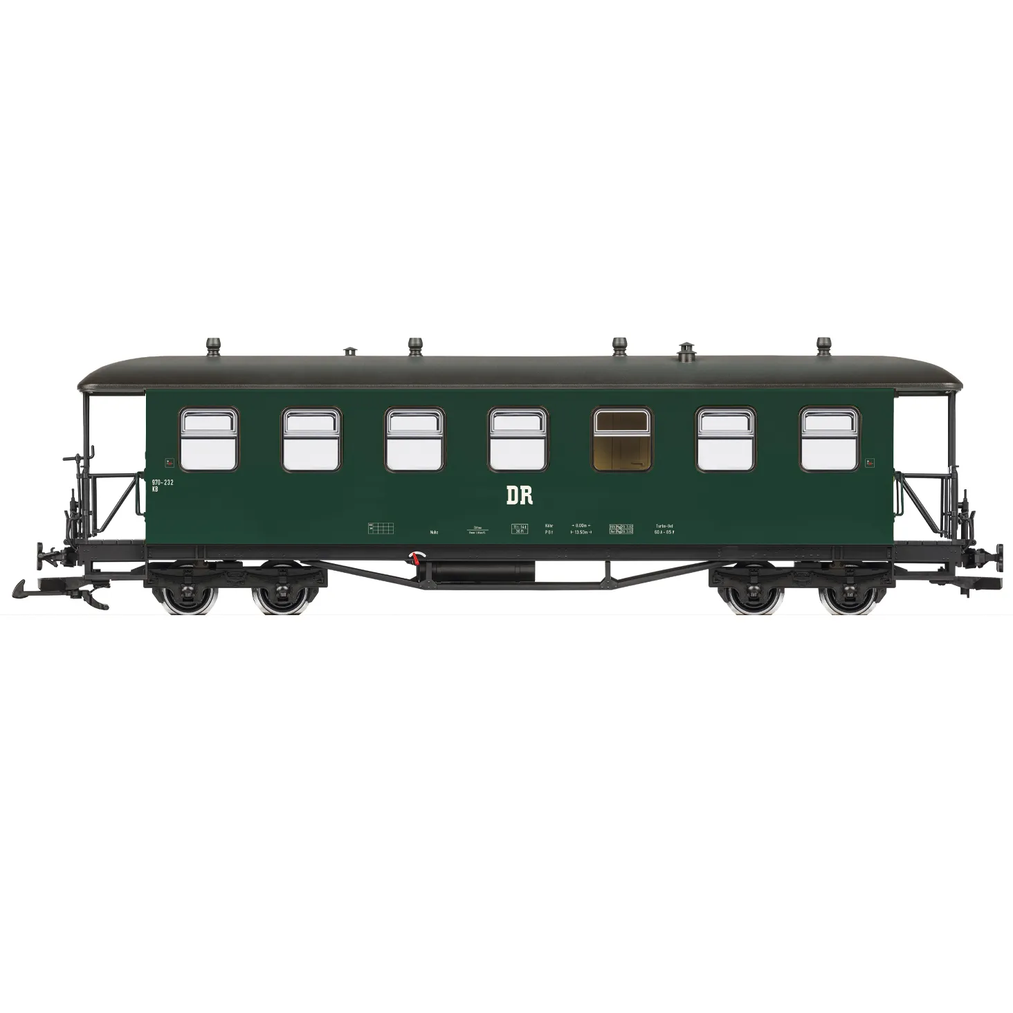 Modell eines zweiachsigen Personenwagens der Bauart KB, besser bekannt als "Reko-Wagen", aus dem Rekonstruktionsprogramm der Deutschen Reichsbahn. Diese Wagenserie entstand zur Modernisierung überalterter Schmalspurfahrzeuge und war in der Epoche IV auf vielen Strecken im Einsatz – so auch auf dem Zittauer Netz, wo dieses Fahrzeug seinen historischen Bezug hat. Der Wagen besitzt eine vollständige Inneneinrichtung, öffnungsfähige Türen sowie typische Details der Umbauzeit wie gummigefasste Neubaufenster und das für diese Bauart charakteristische Sprengwerk am Rahmen. Mit originalgetreuer Beschriftung und Farbgebung vermittelt das Modell eindrucksvoll den Betriebsalltag der späten DDR-Schmalspurbahnen – ein Bild, das auch heute noch von Museumszügen mit historischen Fahrzeugen bewahrt wird. Länge über Puffer: 58 cm.