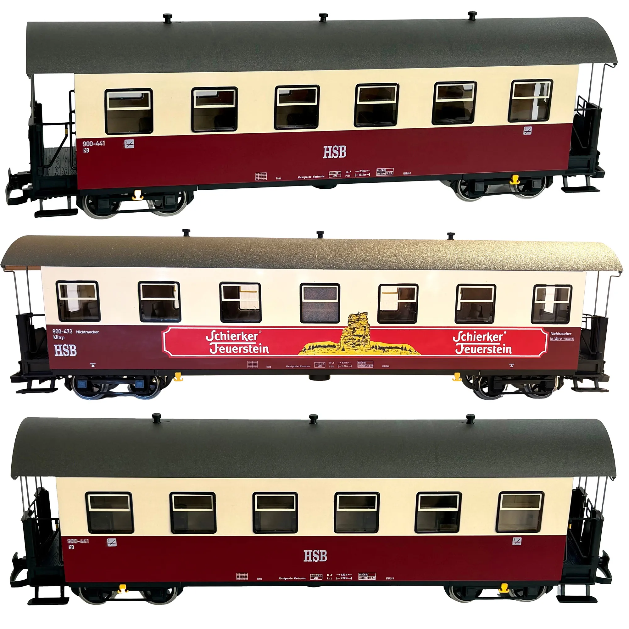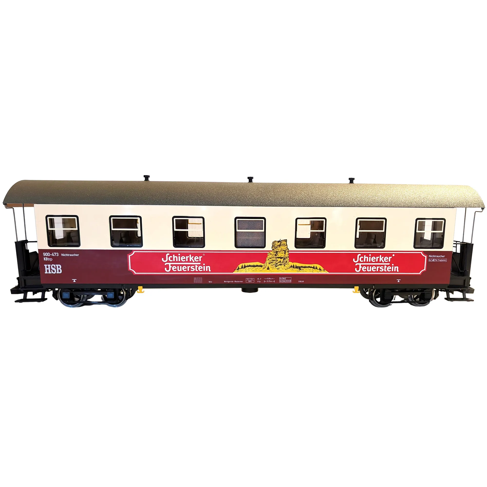 Beim Personenwagen 900-478 kommt eine frisch entwickelte Wagenform zum Einsatz, die durch eine vorbildgerechte Anordnung der Fenster und passende Spur-G-Proportionen überzeugt. Die fein strukturierten Klappfenster mit beiger Einfassung gelten als besonderes Erkennungsmerkmal und verleihen dem Modell eine klar werkbahntypische Note.