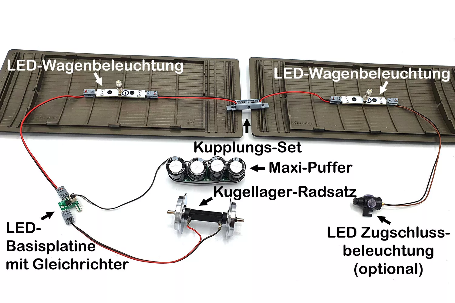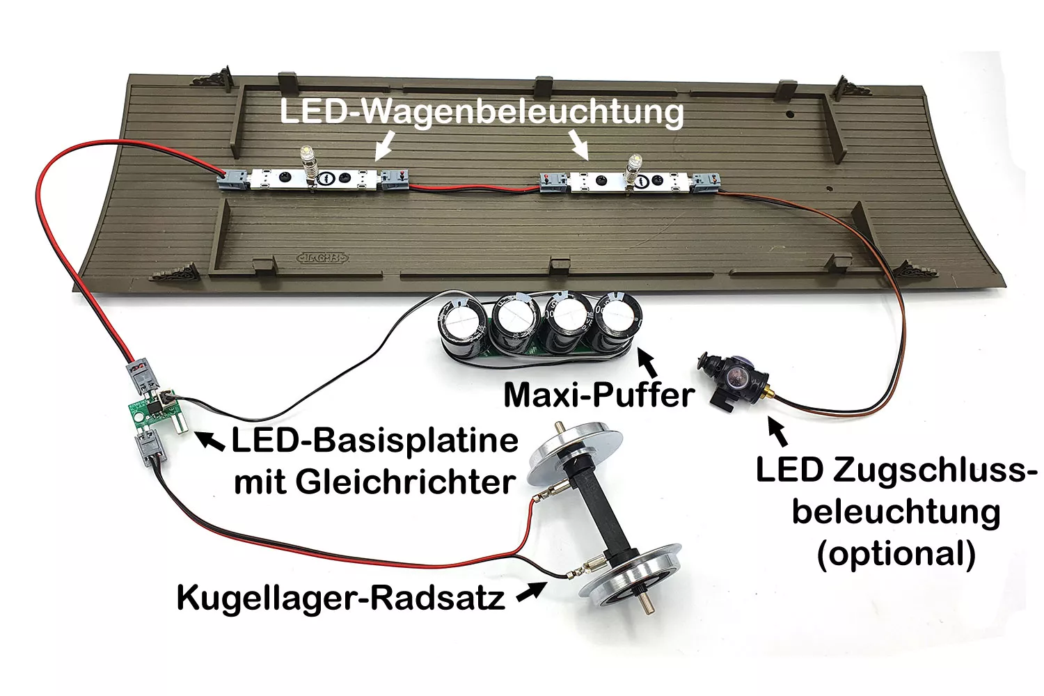 Beleuchtungs-Set mit Radsatz lange Wagen analog Spur-G