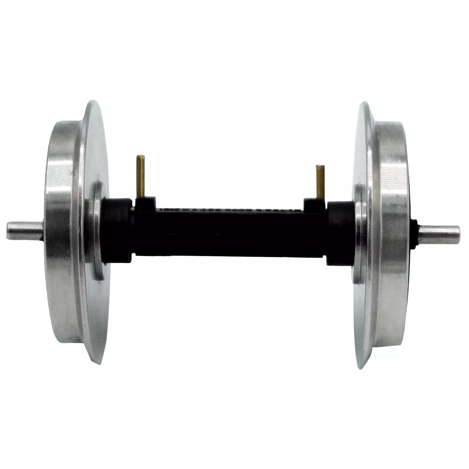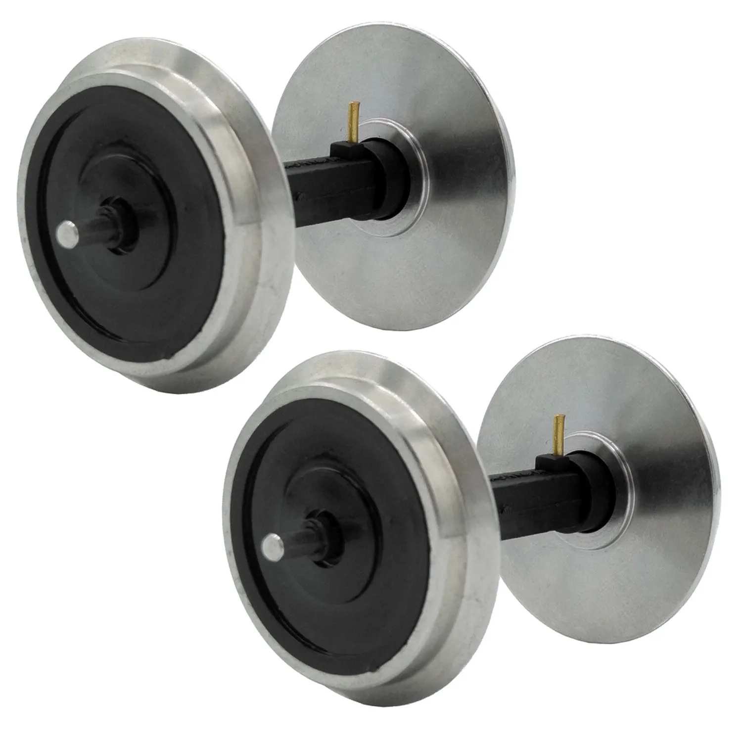 Die reibungsarmen Rad-Achsen bestehen aus hochwertigem Edelstahl und sind mit integriertem Stromabnehmer ausgestattet. Die Abmessungen entsprechen denen des Radsatzes Piko 36165.