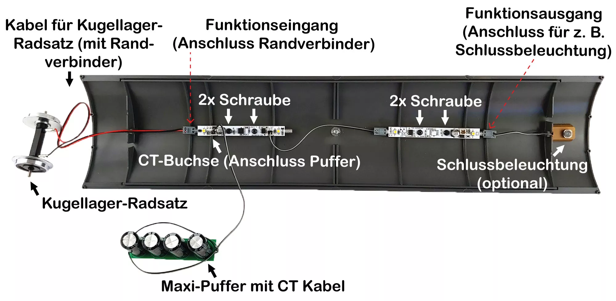 LED Beleuchtungs-Set für kurze und lange Wagen ML-Train 83801001LED-Basisplatine mit Gleichrichter und Pufferanschluss ML-Train 83801002Kupplungs-Set für die Spur-G Wagenbeleuchtung ML-Train 838010032 Stück LED-Wagenbeleuchtung warmweiß 7-24 V ML-Train 83801004LED Zugschlussbeleuchtung warmweiß 7-24 V ML-Train 83801006LED Bühnenbeleuchtung 5-24 V für Spur-G Personenwagen ML-Train 83801007Maxi Puffer (27200 µF) für Lichtleisten ML-Train 88201015Piko-Radsatz 35 mm kugelgelagert stromführend Edelstahl ML-Train 883616514 Stück Flachstecker-Verbinder 2-polig ML-Train 852010194 Stück Randverbinder-Stecker 2-polig ML-Train 85201021Flachstecker 2 polig 2 Stück ML-Train 85201003Kabel für Kugellagerradsatz mit Randverbinder-Stecker ML-Train 85101062Verbindungskabel für Lichtleisten ML-Train 85101063