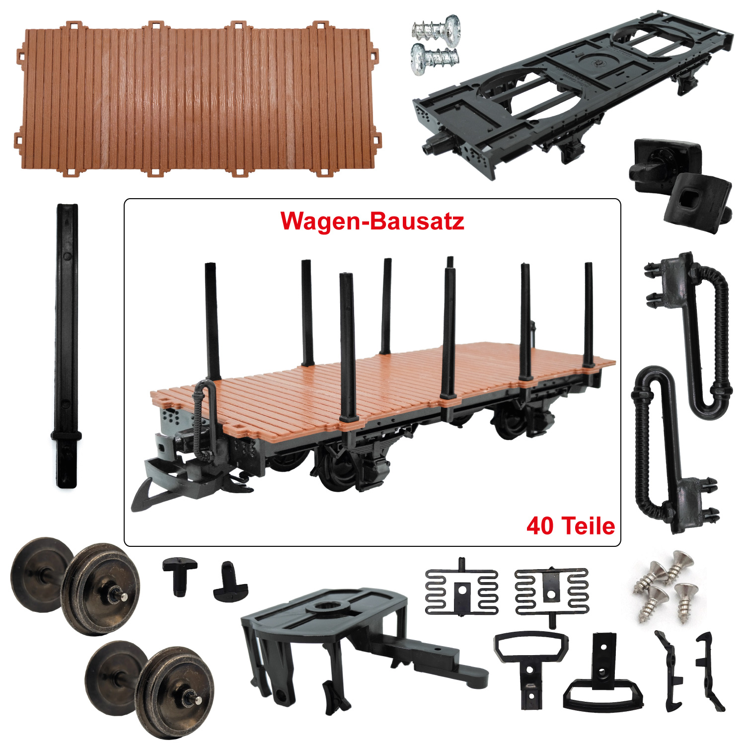 Rungenwagen braun/schwarz mit Metallräder als Spur-G Bausatz ML-Train 88920560