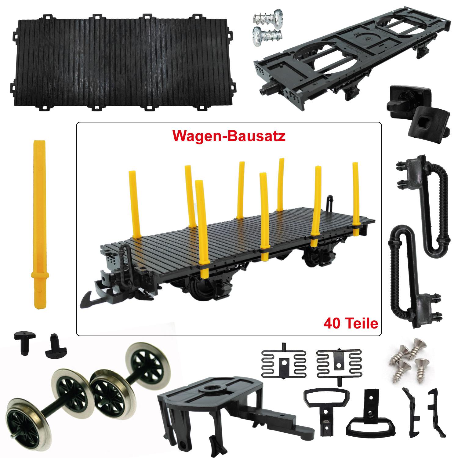 Rungenwagen schwarz/gelb mit Doppelspeichen-Metallräder als Spur-G Bausatz ML-Train 88921570