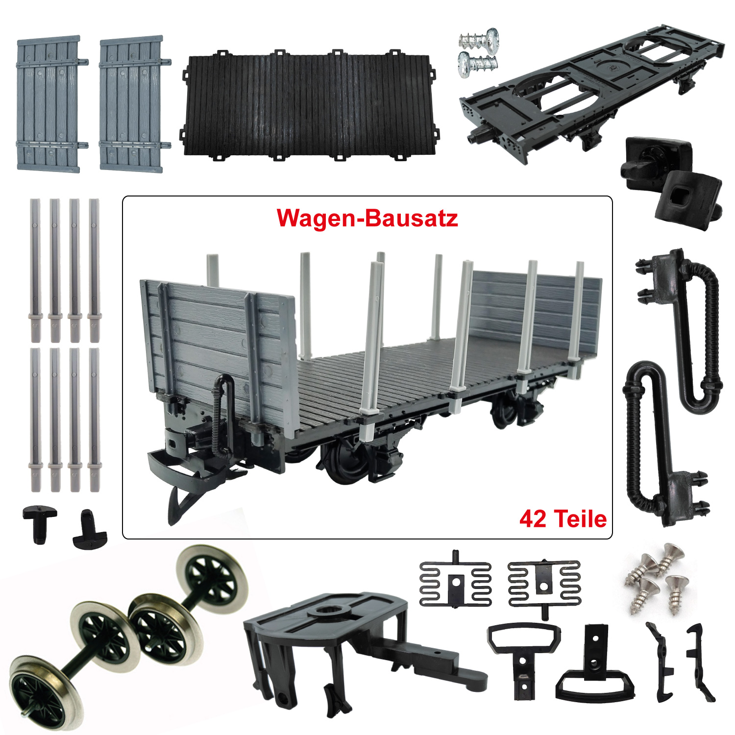 Rungenwagen mit Seitenwänden schwarz/grau mit Doppelspeichen-Metallräder als Spur-G Bausatz ML-Train 88921600