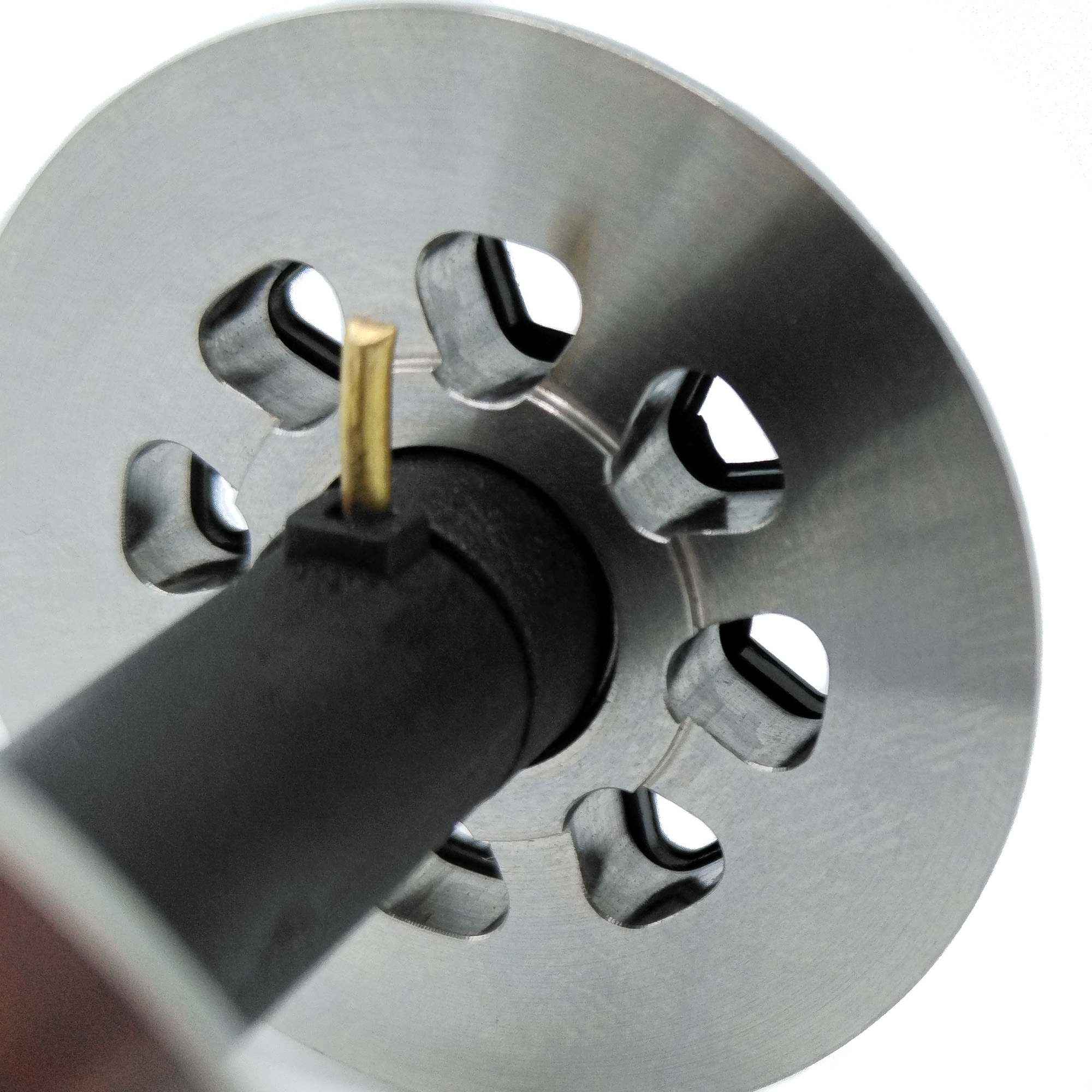 Gefräster Edelstahl sorgt für hohe Stabilität, Korrosionsbeständigkeit und exakten Rundlauf auch nach vielen Betriebsstunden auf der Anlage. Integrierter Stromabnehmer