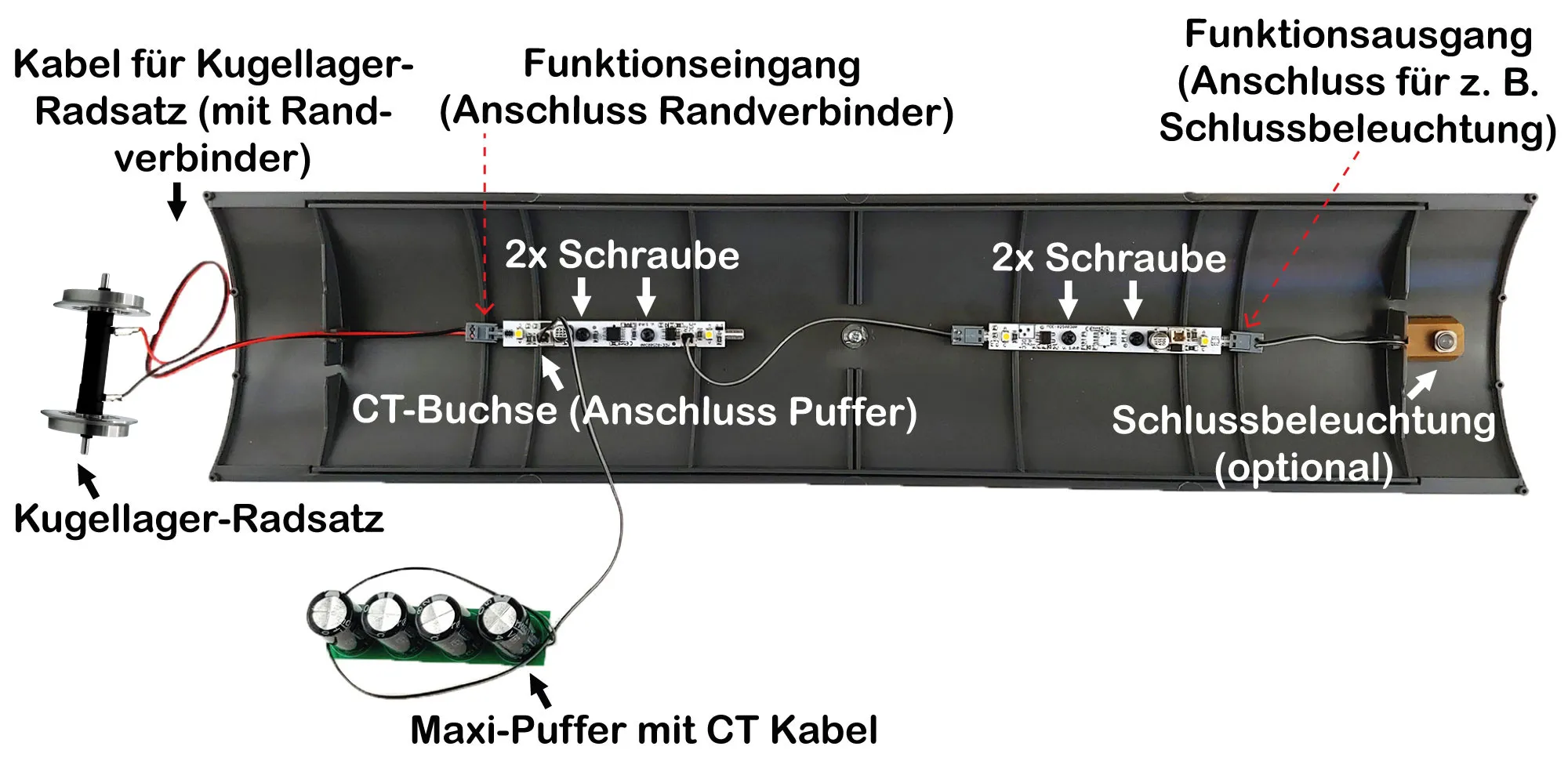 Passend für alle gängigen Spur-G-Fabrikate. Der Einbau ist unkompliziert und erfordert keine Modifikationen an bestehenden Wagenachsen. Optimierte Laufruhe