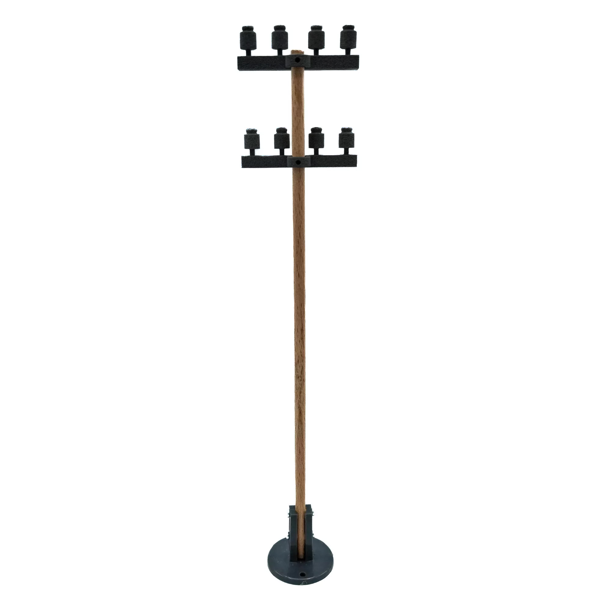 Gefertigt aus Echtholz für den Mast und mit filigranen Mastauslegern, die im modernen 3D-Druckverfahren produziert wurden und je vier Isolatoren tragen. Robuste Konstruktion