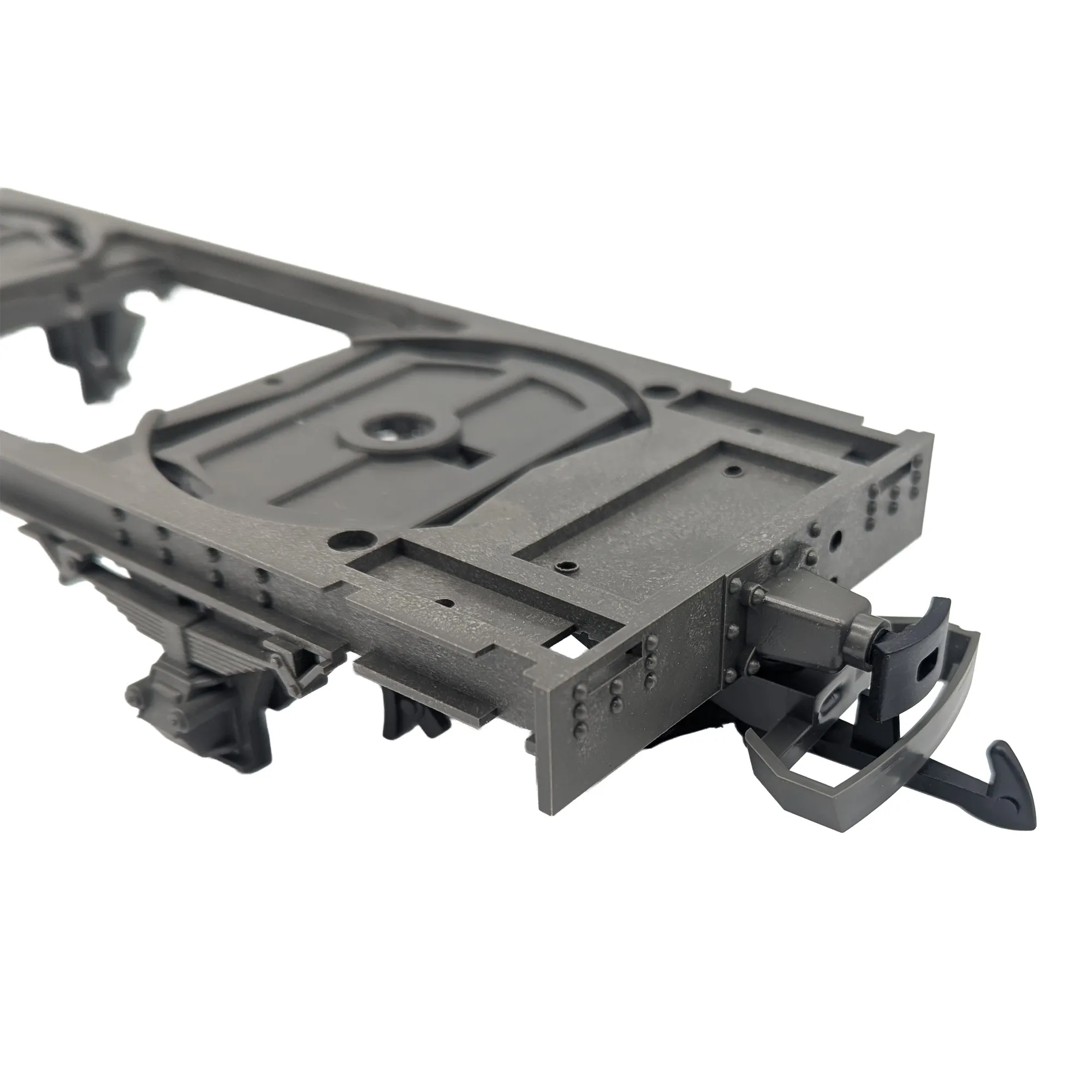 Dieses Set kombiniert zwei graue Drehgestelle mit integrierter Kupplung und Kupplungsbügel mit einem robusten Universal-Fahrrahmen in Grau (30 cm LüP). Es eignet sich ideal für den Umbau, die Reparatur oder den Selbstbau kurzer Personen- und Güterwagen der Spur G von LGB und ML-Train. Der Fahrrahmen besteht aus glaskugelverstärktem Polyamid, das für hohe Formstabilität, UV-Beständigkeit und Witterungsresistenz sorgt. Alle Komponenten werden unmontiert geliefert und ermöglichen eine individuelle Anpassung an verschiedene Wagenmodelle.