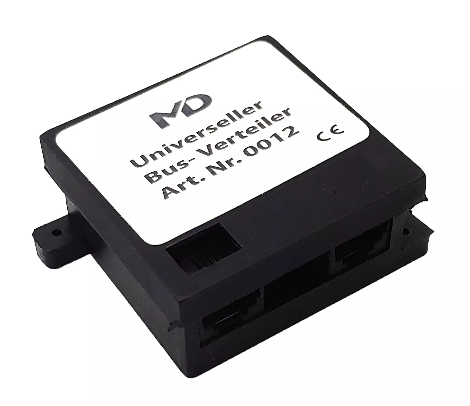 Der universelle Busverteiler ist für alle handelsüblichen Systeme (auf RJ12 Basis (6p6c)), wie XpressNet, LocoNet, LGB-Bus und Massoth-Bus, geeignet. Dieser Verteiler ermöglicht 2 weitere Steckplätze für den jeweiligen angeschlossenen Bus. Mehrere Busse dürfen nicht kombiniert werden.