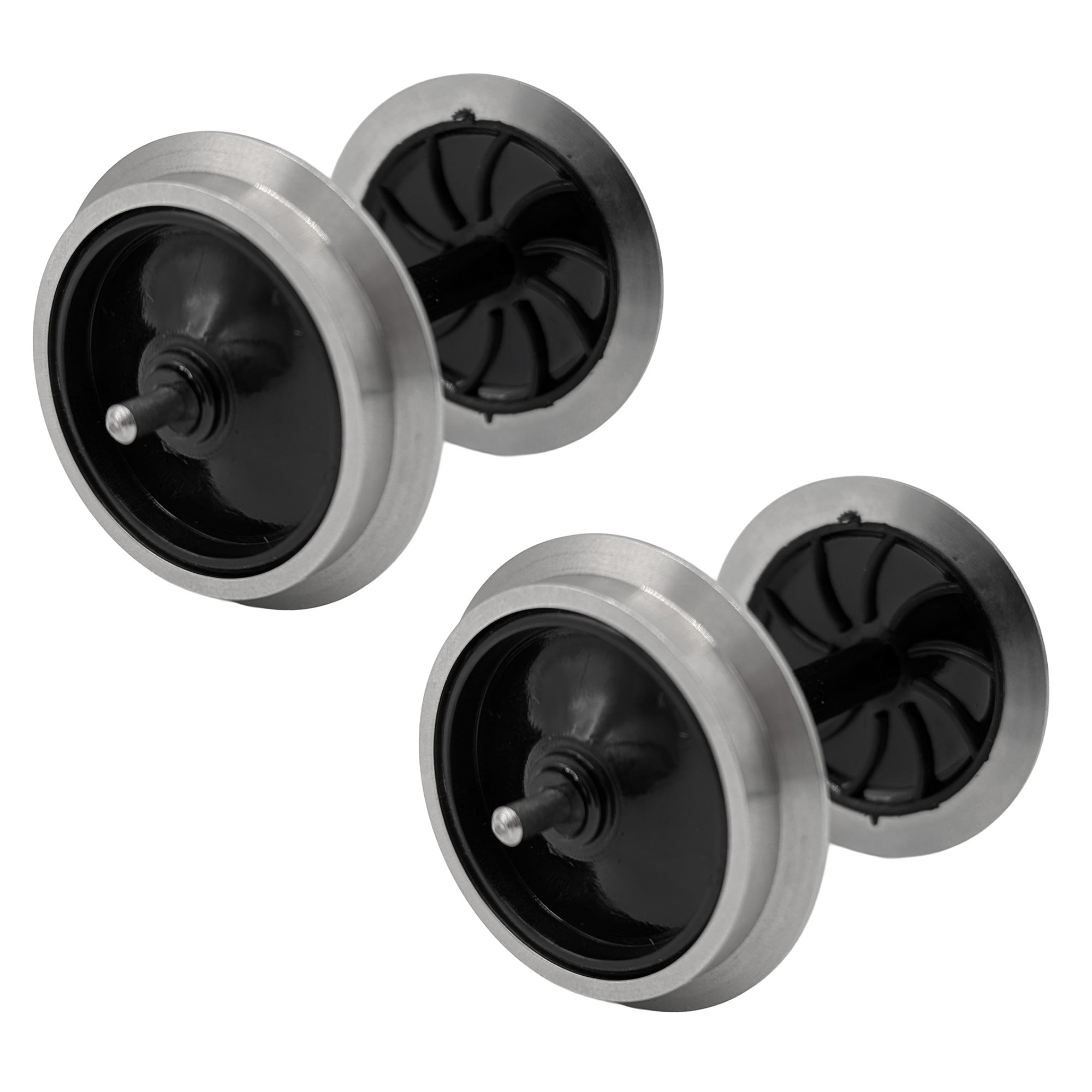 Massive Vollradsätze (35 mm) aus Edelstahl für Spur G, passend für Piko-Fahrzeuge. Nicht stromführend, sorgen für Laufruhe, realistische Fahrgeräusche und dauerhaft saubere Gleise ohne Abrieb.