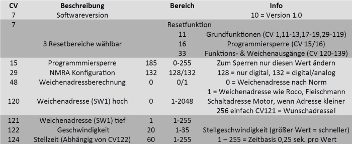 Unterstützt bitweise CV-Programmierung, Registermodus, POM (Programmierung auf dem Hauptgleis) und eine Programmiersperre via CV 15/16. Eine zusätzliche Last ist nicht erforderlich.