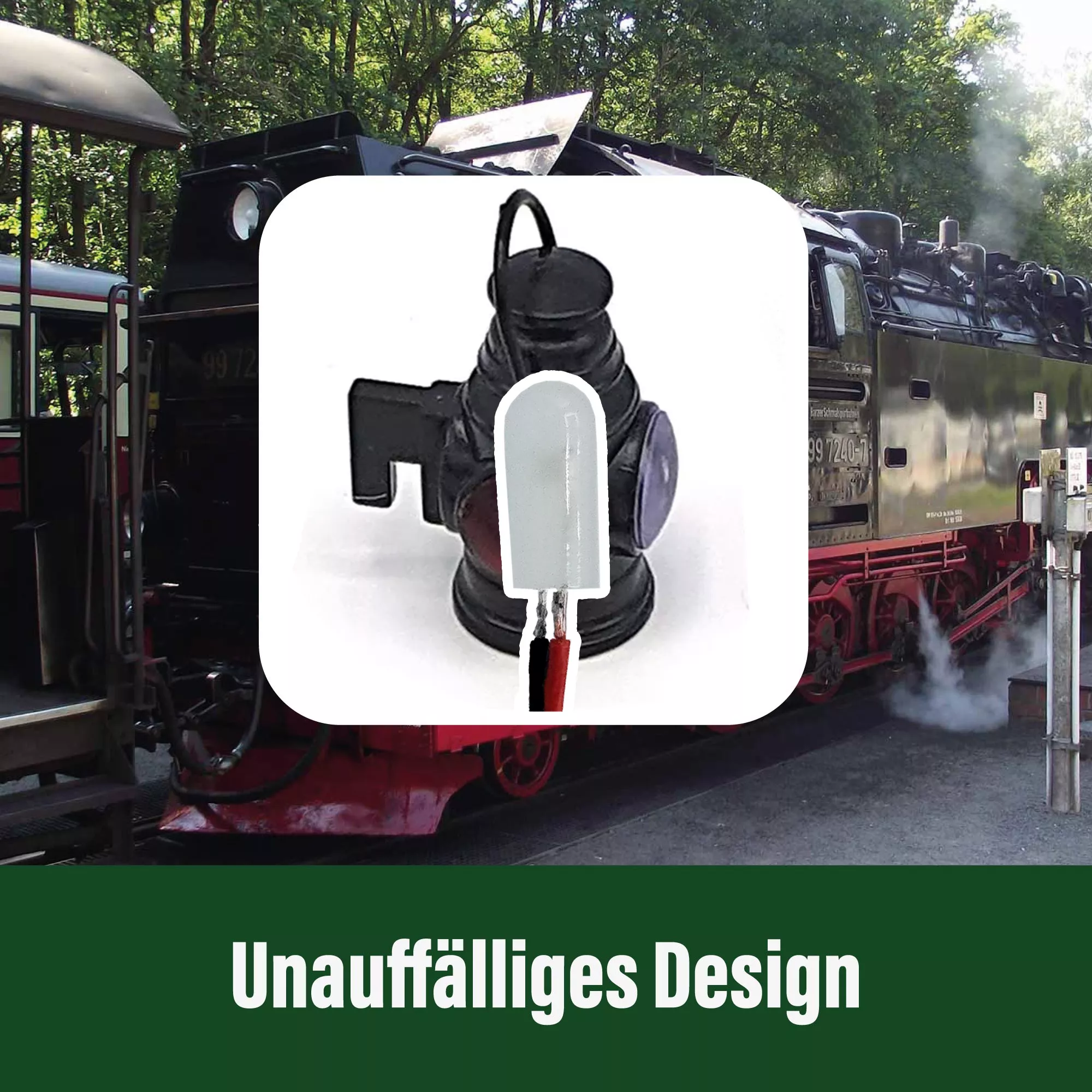 Authentisches ModellbahnerlebnisDie Zugschlusslampe im originalen Design sorgt für ein realistisches und nostalgisches Modellbahnerlebnis. Das Vorbild ist die Laterne von der Firma „Dressel Company of Arlington“. Diese wurde von der Lake Shore and Michigan Southern Railroad und dann von der New York Central genutzt (ca. um 1930).